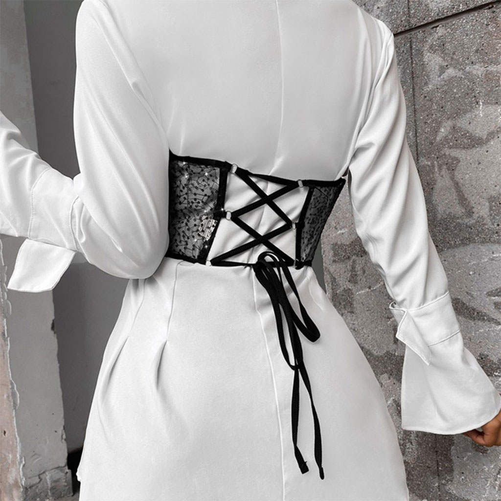 Corset Belt;Women Corset Belt Waist Shapewear Crop Top;Girls Punk Waist Embroidery Waist Shaper;T Shirt Blouse Outwear Lace up Bustier;Streetwear Overbust Underbust Waspie Corset;Waist Belt Decoration Girdle Sequin Bead Decor