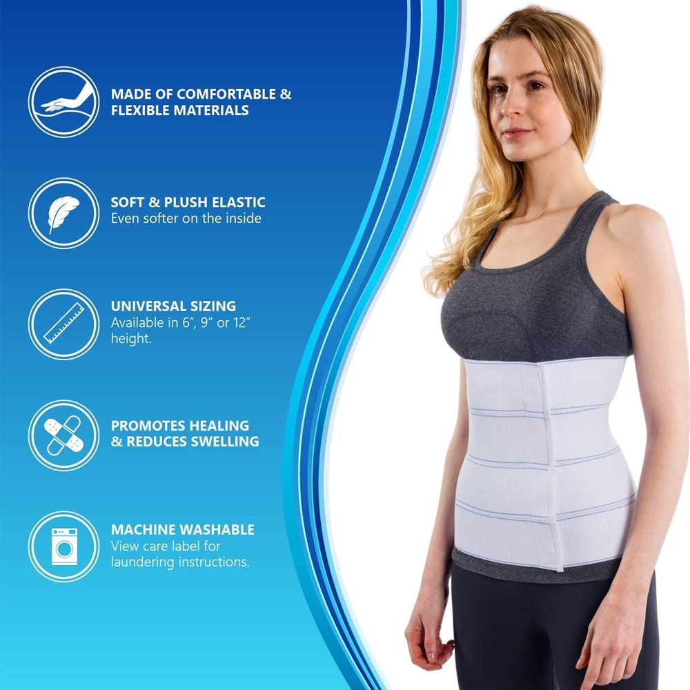 Size Chart: ( plaese measure around your belly on), refer to the picture. Size S: fits waistline 50-76cm/19.6-29.9inch Size M: fits waistline 76-114cm/29.9-44.9inch Size L: fits waistline 114-152cm/44.9-59.8inch Size XL: fits waistline 152-190cm/59.8-74.8inch Size XXL: fits waistline 190-229cm/74.8-90inch Size XXXL: fits waistline 229-267cm/90-105inch About this item: CUSTOM FIT: Binder fits around your waist comfortably and is naturally flexible, conforming to any shape and size. Hook compatible elastic permits closure at any point on the circumference of the binder. Extra-wide design - allows the binder to wrap around the entire stomach, staying in place without rolling or shifting, when moving around. PREMIUM SUPPORT BELT - ADJUSTABLE: Made of premium, latex-free, breathable, comfortable, high-quality and lightweight materials. Provides compreion to the upper and lower abdomen while improving blood circulation and oxygen levels. This in turn reduces swelling and promotes healing. Built to help support the lower back and improve posture during breastfeeding. RECOVERY & REDUCE DISCOMFORT: Whether recovering from surgery, injury, or just need extra support, abdominal binders can stabilize your core and improve muscle tone. Provides effective support ar hernia surgery, c-section, natural child birth and abdominal injuries. Restores muscle tone and the shape of your abdomen, while supporting your lower back and holding tummy in. Redefines your waistline and relieves back pain. Helps reduce post-surgery complications and improves postpartum healing. Supports your stomach and lower back to reduce overweight or obesity-caused pain, swelling, inflammation and sorene due to stiff, strained, or weak muscles, bladder probl, post-surgery recovery (liposuction, gastric bypa, cesarean birth, hernia repair). Can also be used as a hernia or postpartum diastasis binder, a tummy tuck belt, and a girdle to help with belly apron, panniculus, or to hold in exce or hanging belly. Provides a smoothing and slimming effect to your tummy.