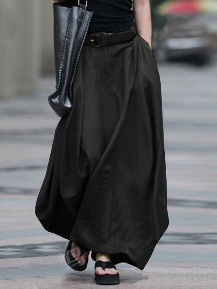 Buy Women Cotton High Elastic Waist Side Pocket Zipper Solid Casual Skirts in Nigeria