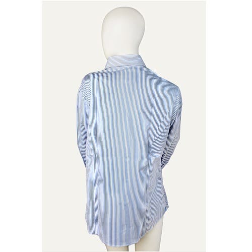 with 3 quarter-length sleeves with buttion fastening at the cuffs and an elegant low collar, this