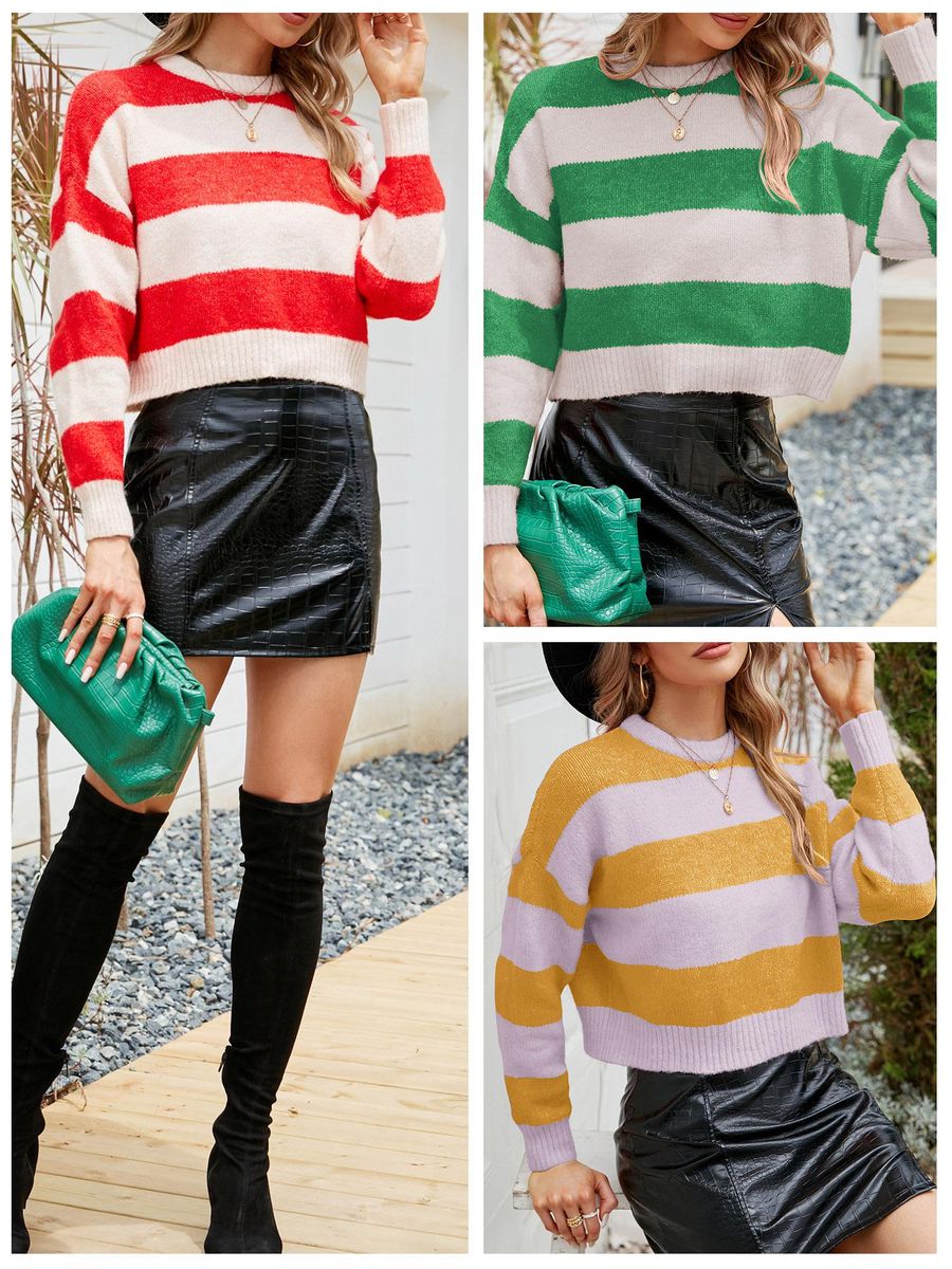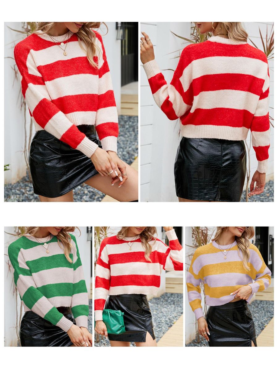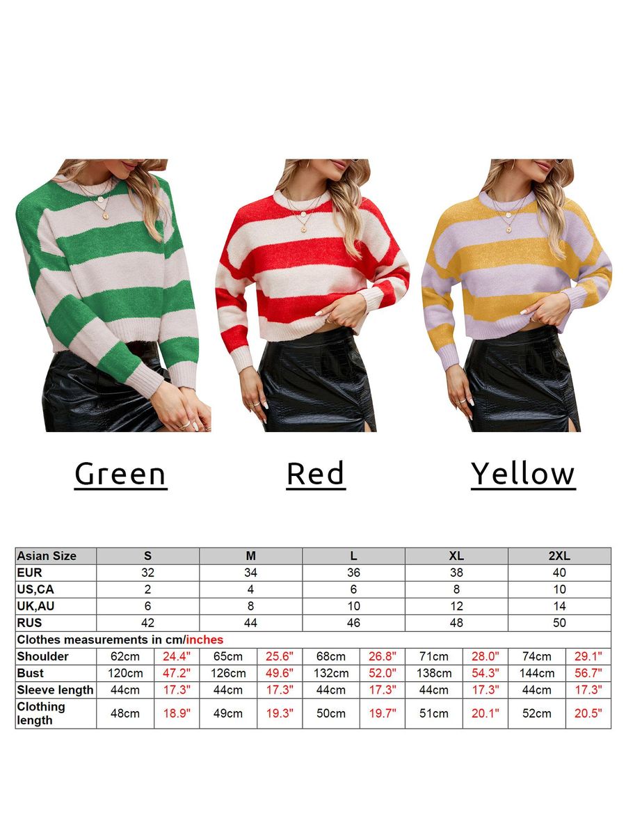 Buy Women Crop Pullovers Striped Long Sleeve O Neck Casual Sweaters in Nigeria