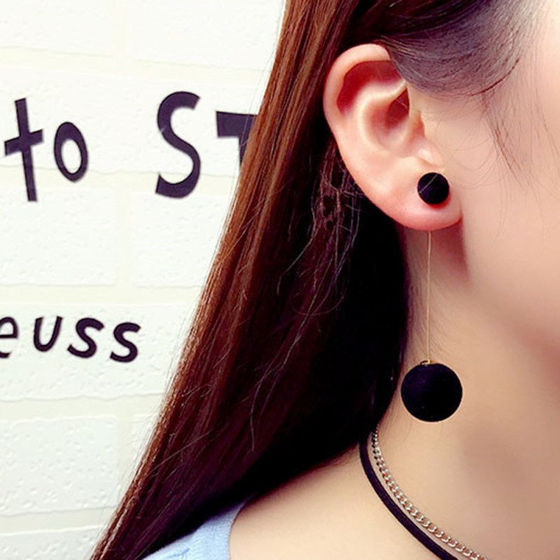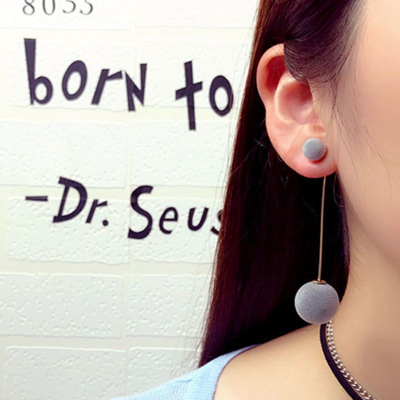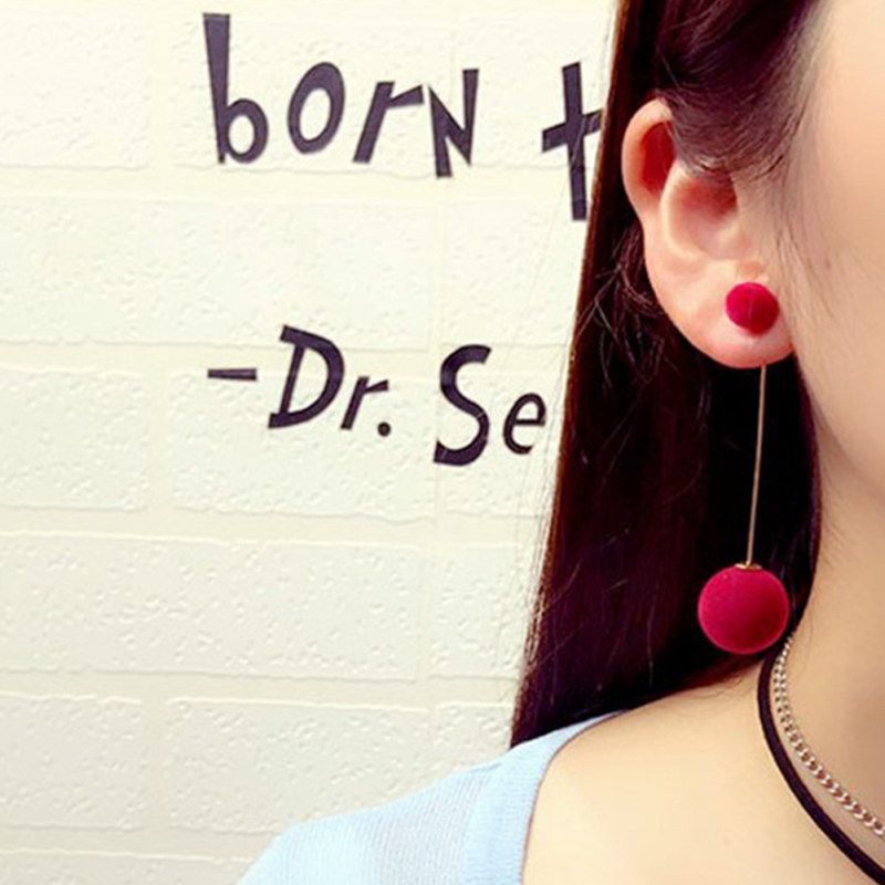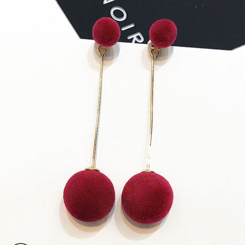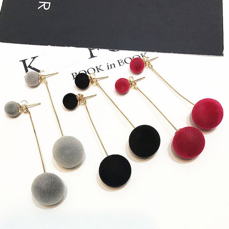 Buy Women Double Faux Fur Ball Long Dangle-Black in Nigeria