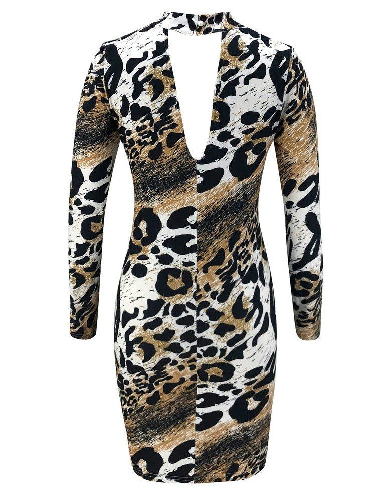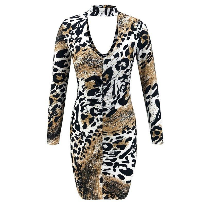 This mini style is cut from leopard-print fabric in a slim silhouette and has a chocker neckline and flattering ruching to enhance your curves. The open back reveals just the right amount of skin. Wear it with vibrant sandals.