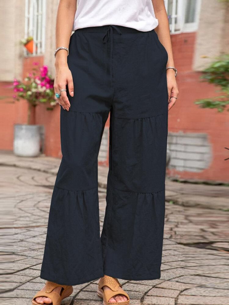 Buy Women Elastic Waist Pleated Side Pocket Lace Up Casual Pants in Nigeria