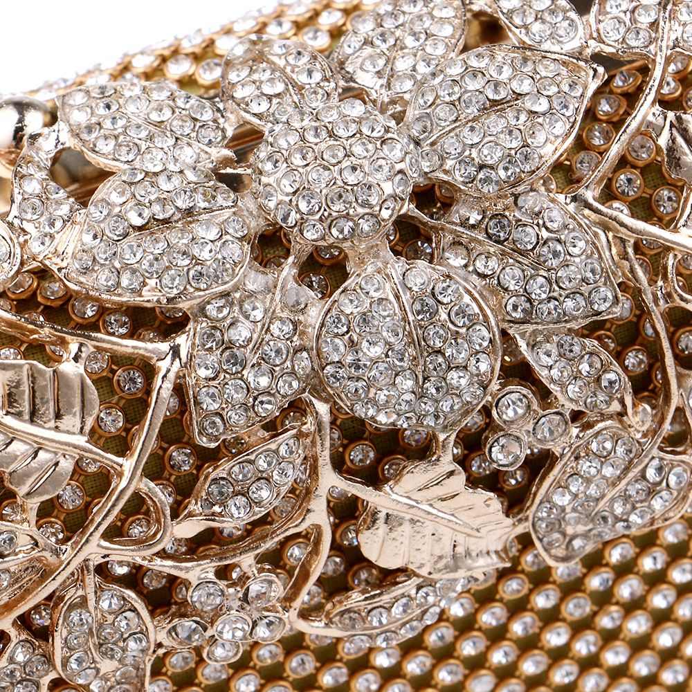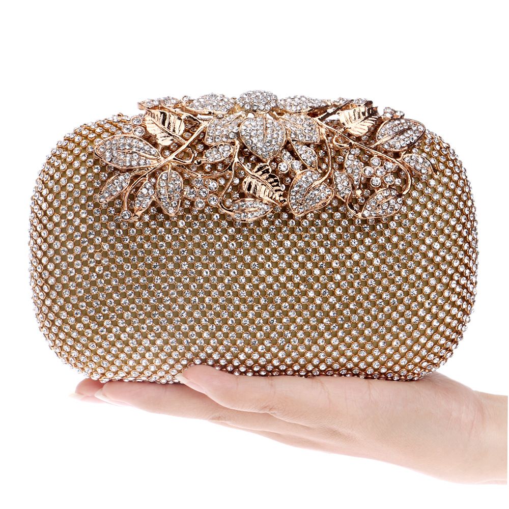 Women Evening Clutch Bag Crystal Rhinestone Flower Wedding Bridal Purse