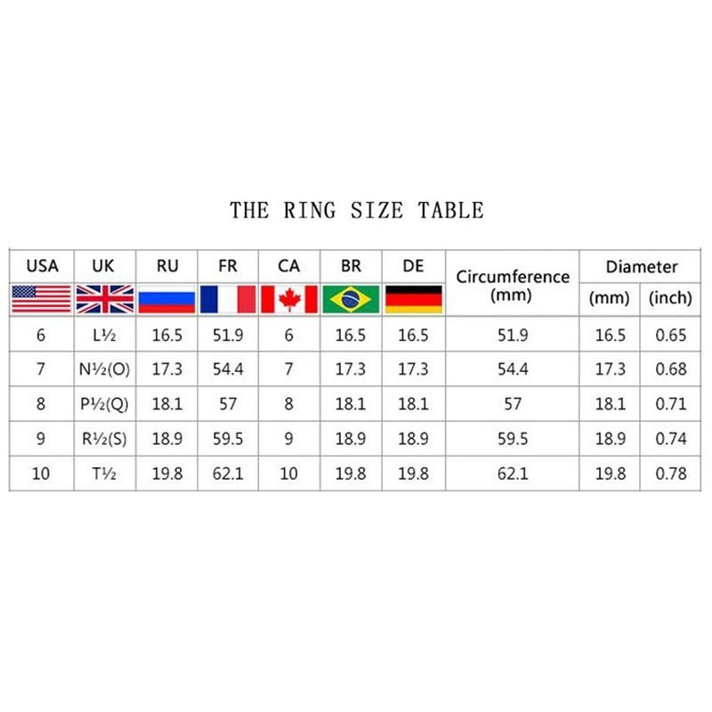 US Size 6(Dia): 16.5mm/0.65", Circumference: 51.9mm/2.04" (Approx.)