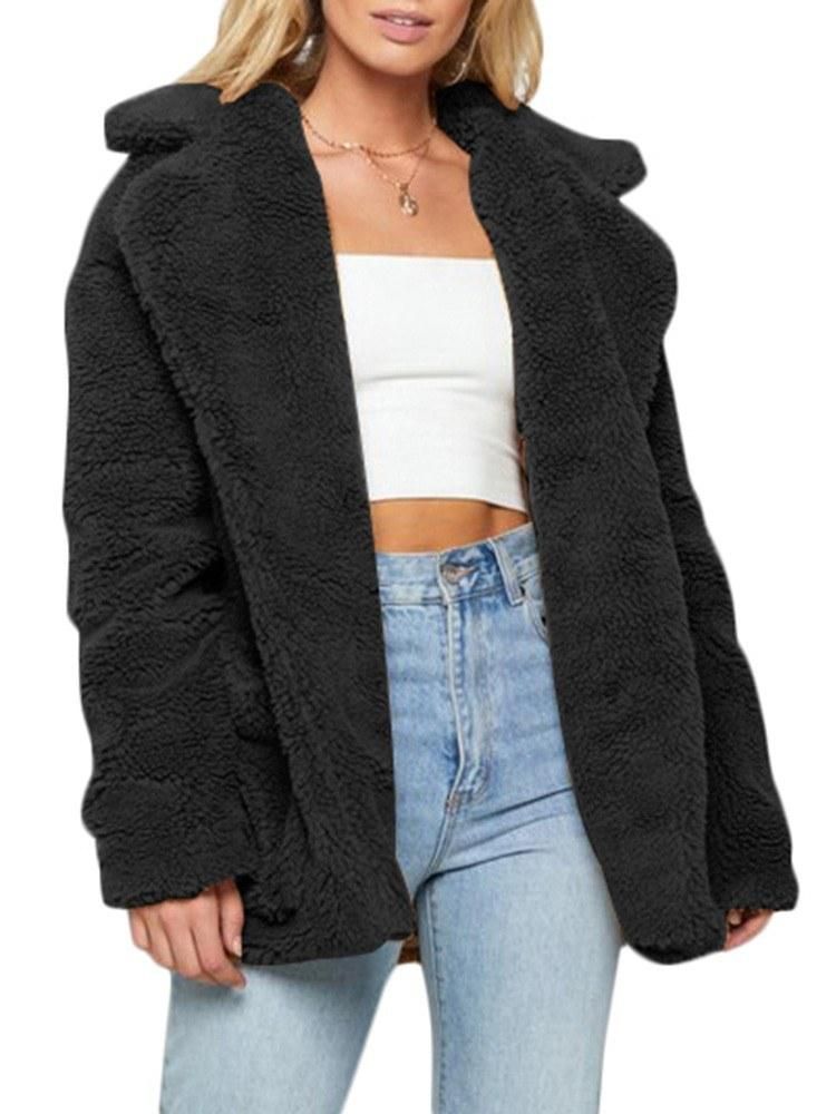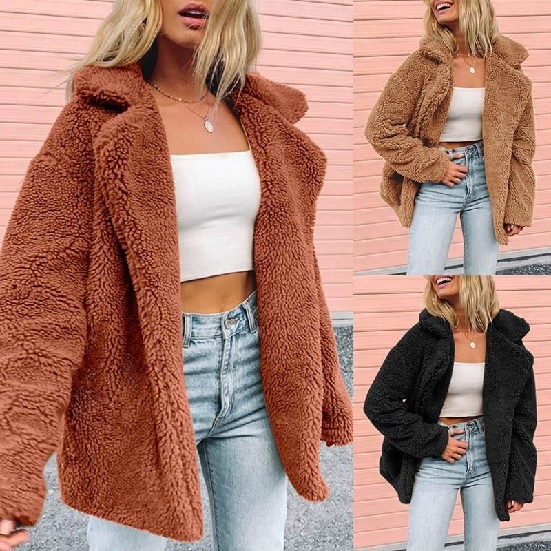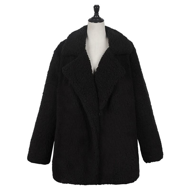 Buy Women Faux Fur Coat Jacket Warm Fleece Long Sleeves Notched Lapel Collar Solid Vintage Furry Casual Long Overcoat Outwear in Nigeria