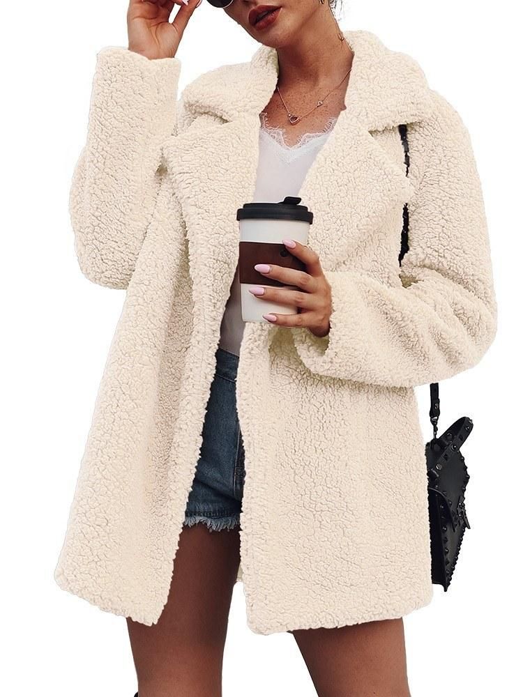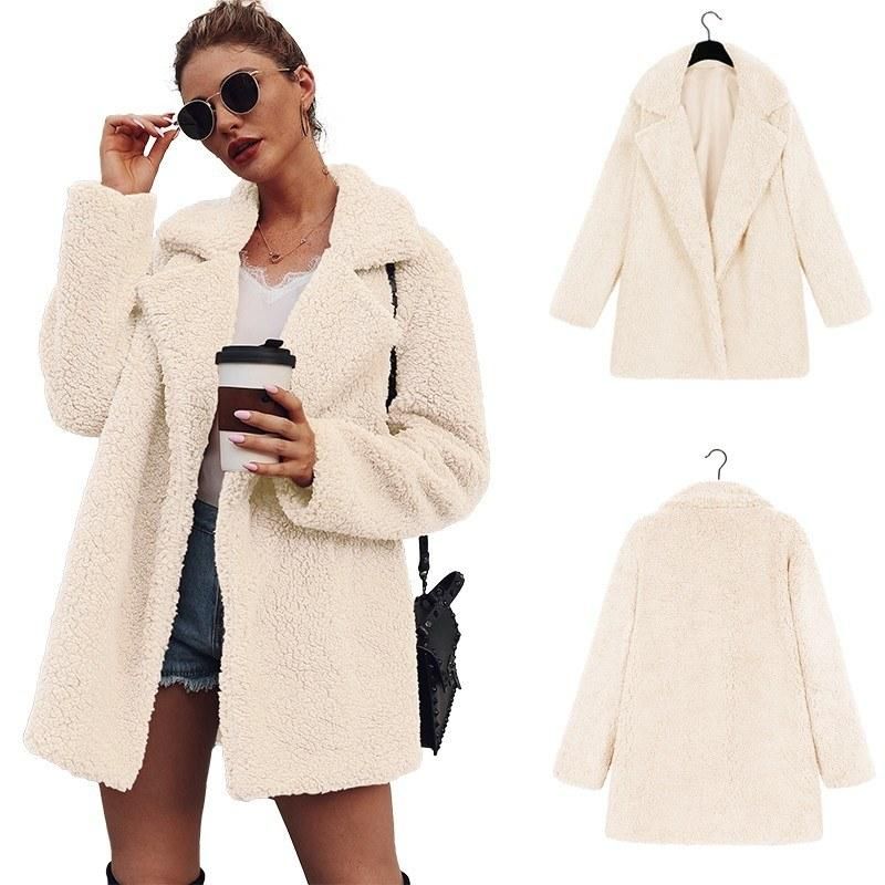 Buy Women Faux Fur Coat Jacket Warm Fleece Long Sleeves Notched Lapel Collar Solid Vintage Furry Casual Long Overcoat Outwear Beige in Nigeria