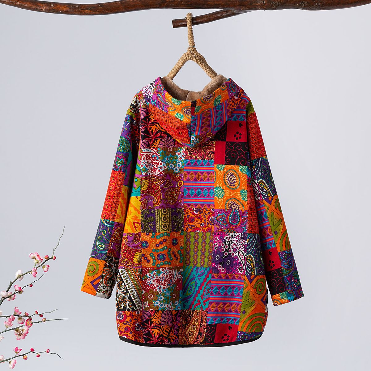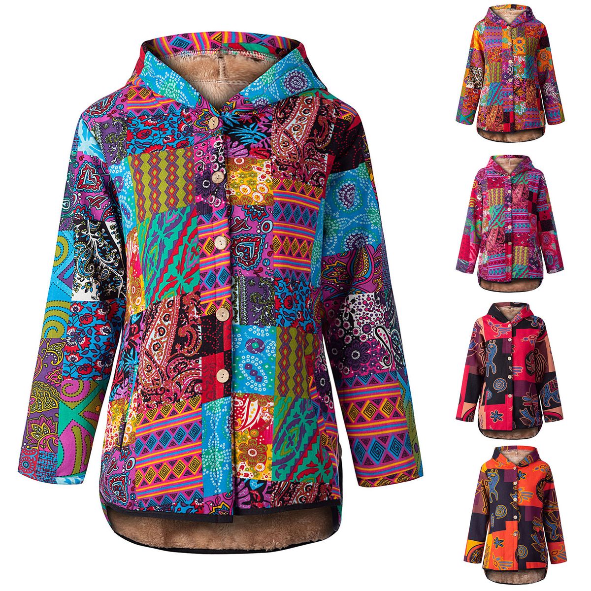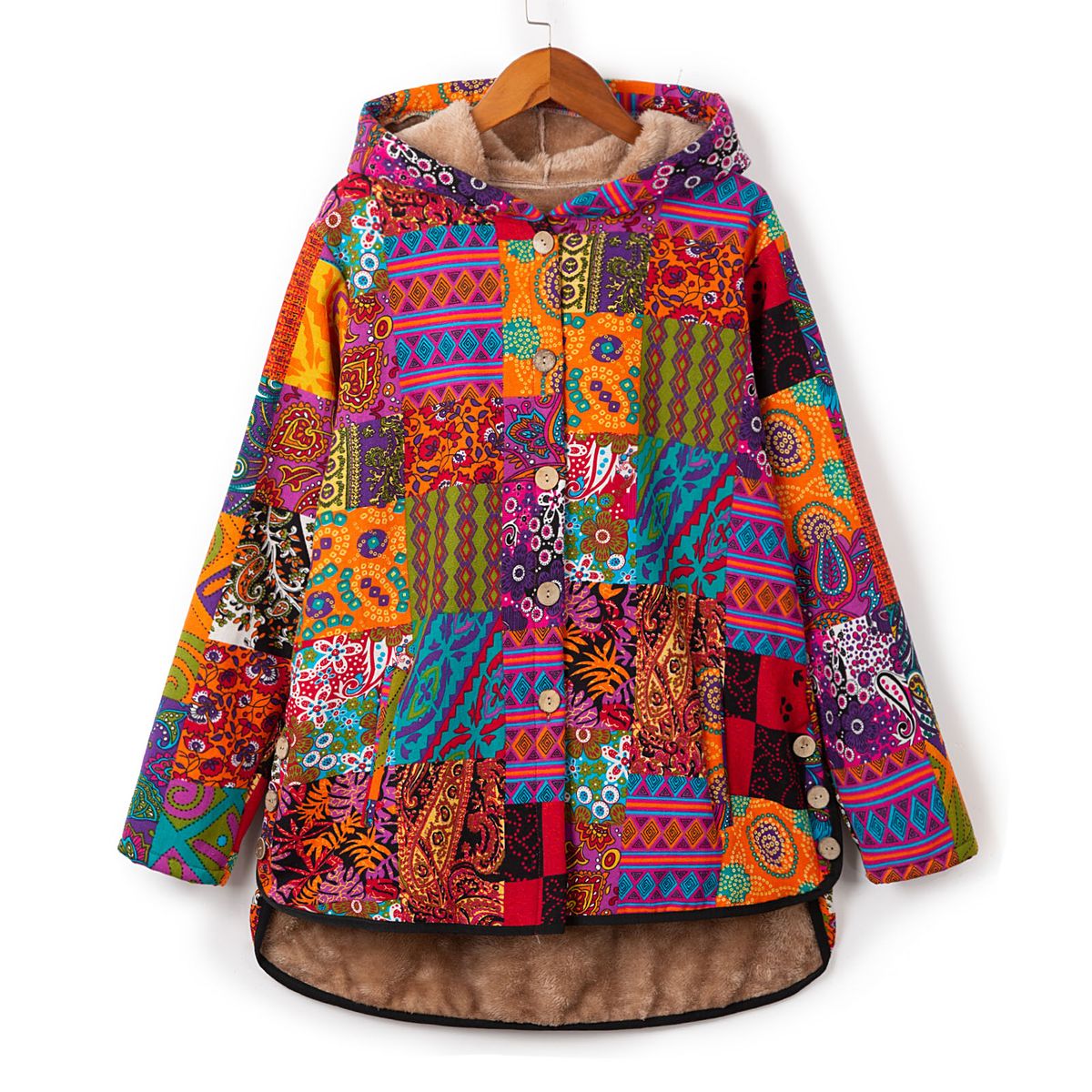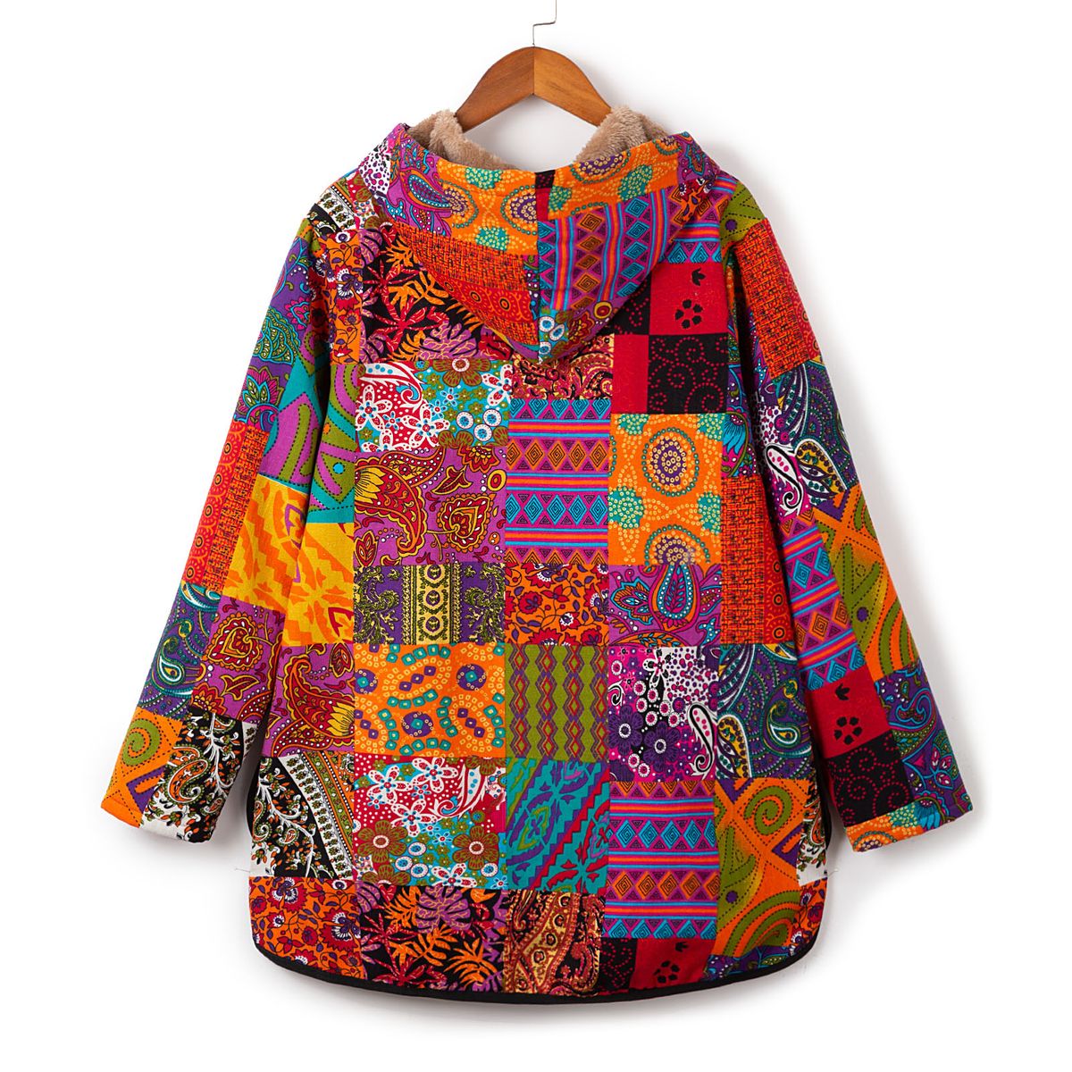 This jacket with fleece feels soft and warm. It is designed with two pockets to carry your necessities. The vintage pattern is eye-catching. Just load up your wardrobe with it for this winter.