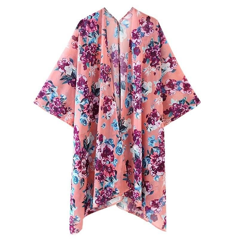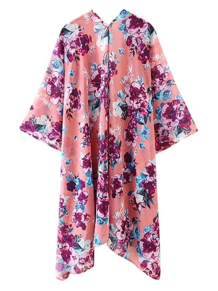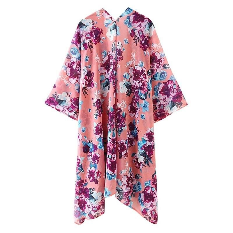 Buy Women Floral Loose Kimono Cardigan Open Front 3/4 Sleeves Scarf Oversized Bohemian Holiday Bikini Cover Ups Beachwear in Nigeria