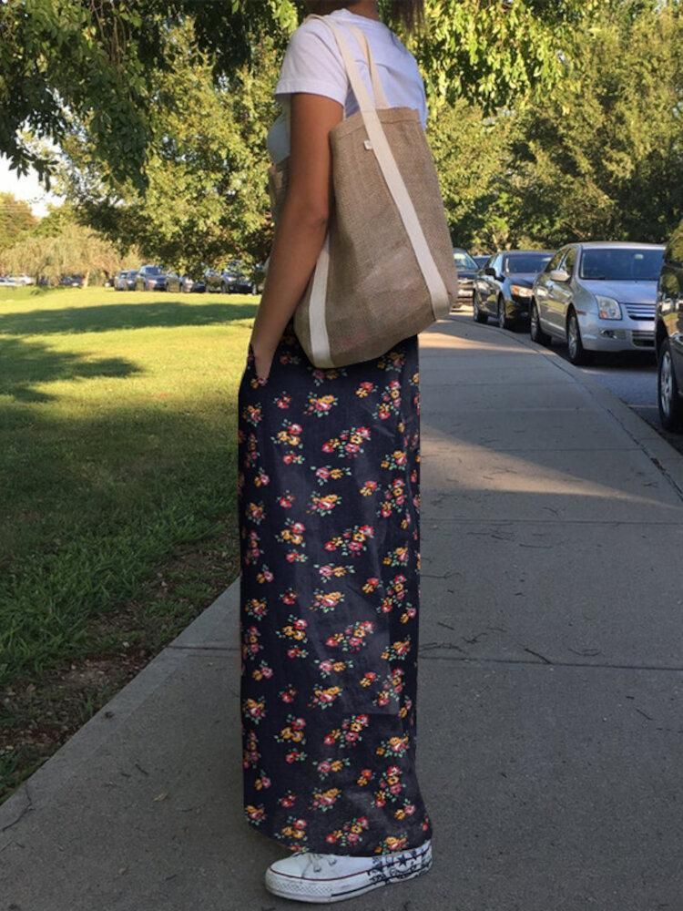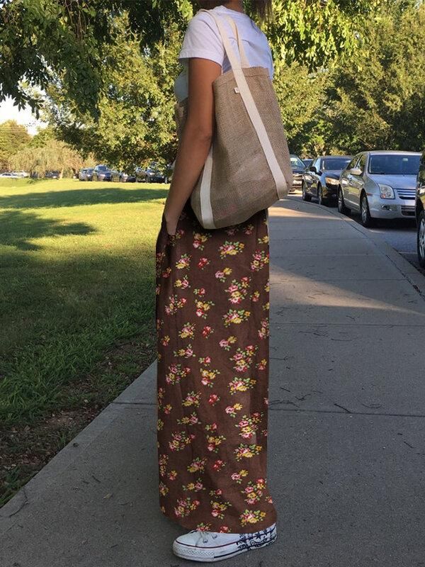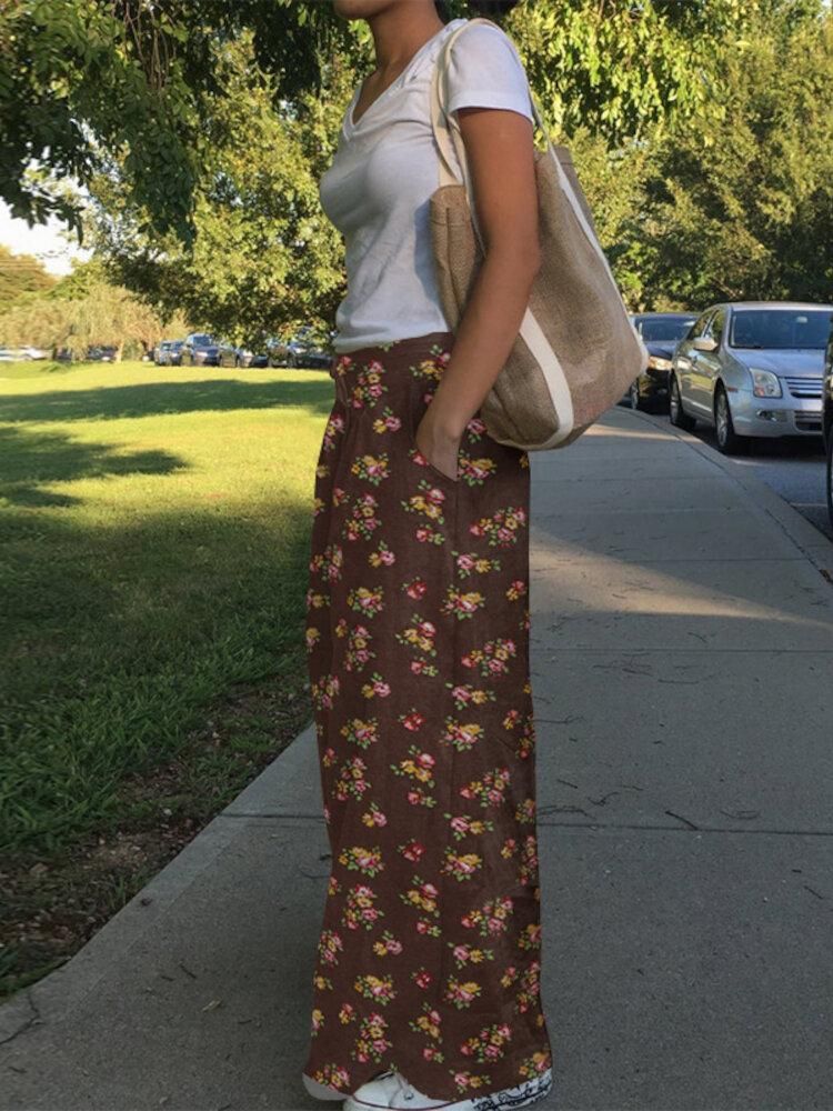 Buy Women Floral Print High Elastic Waist Vintage Wide Leg Pants With Pocket in Nigeria