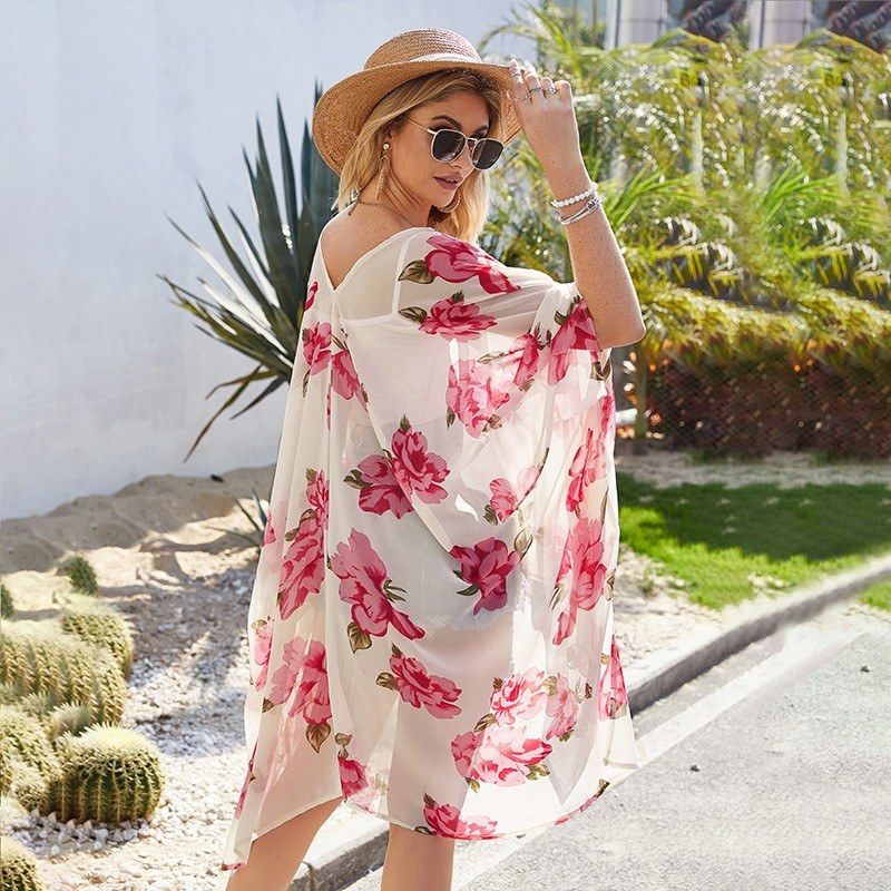 Step into summer with this loose open front cover ups. It has vintage floral print, open front, and batwing 3/4 sleeves. When paired with tanks tops, shorts, jumpsuits, or swimsuits, it brings you a romantic and chic holiday style.