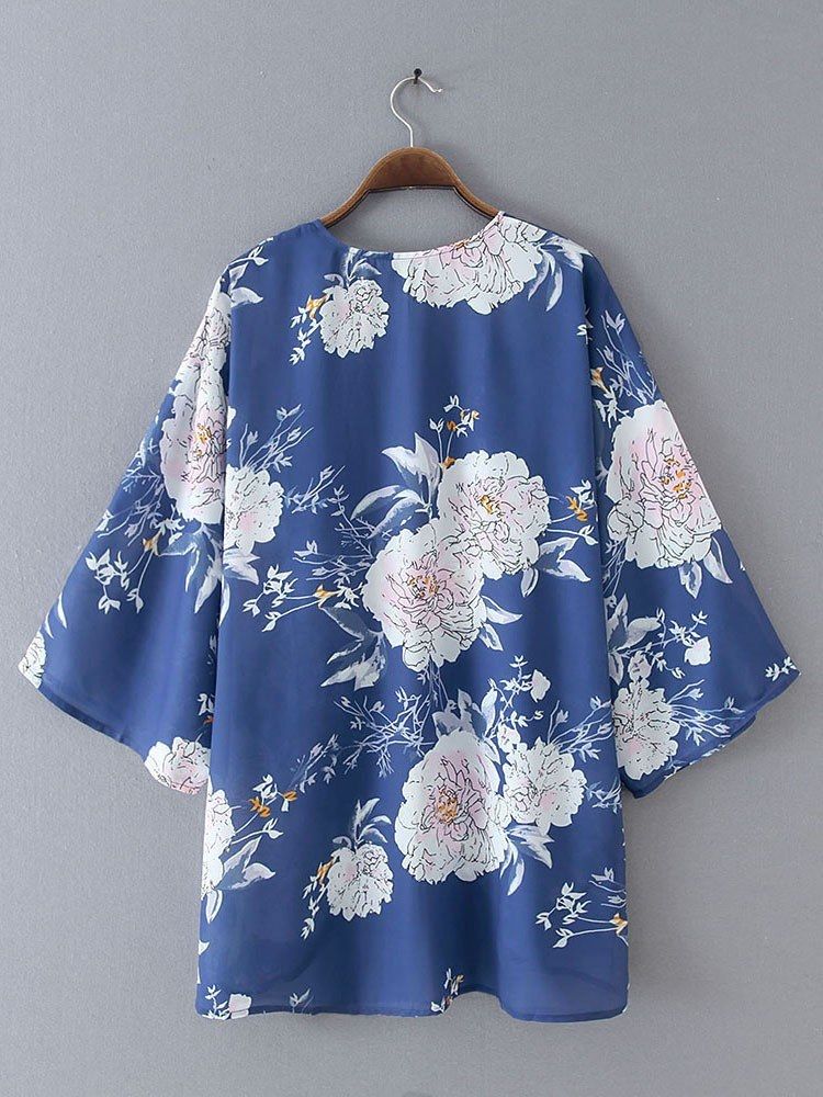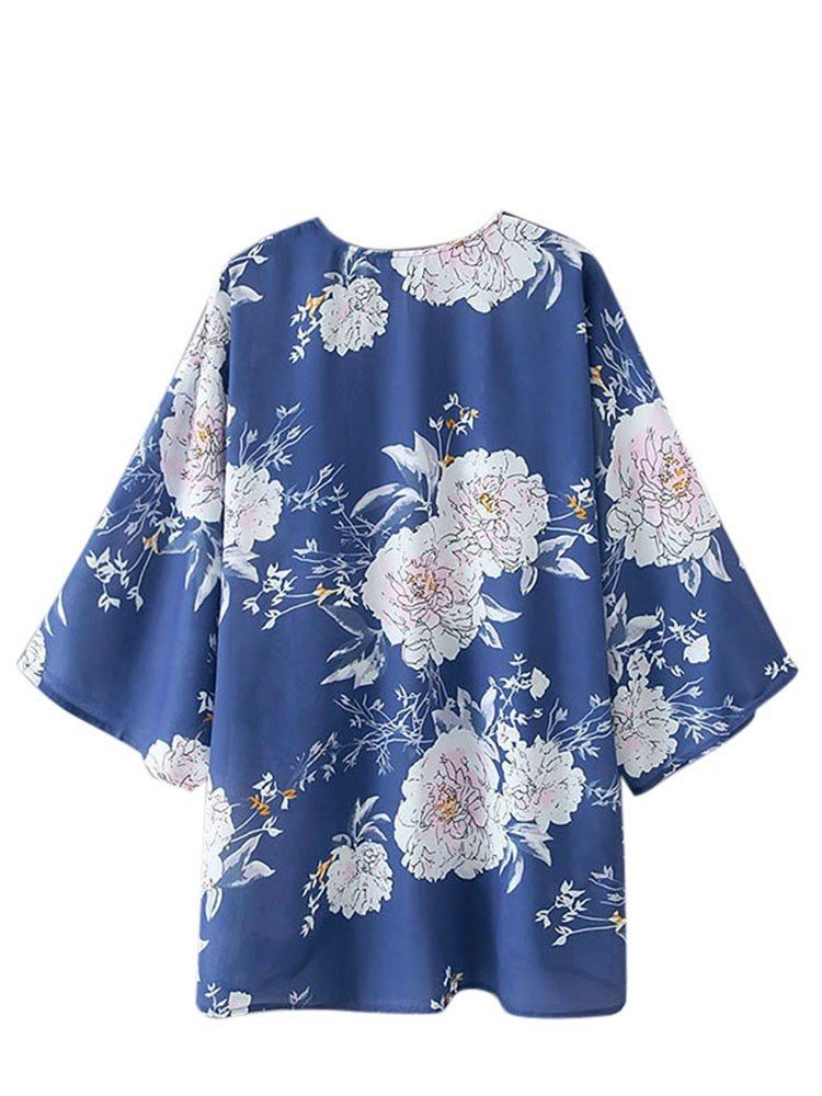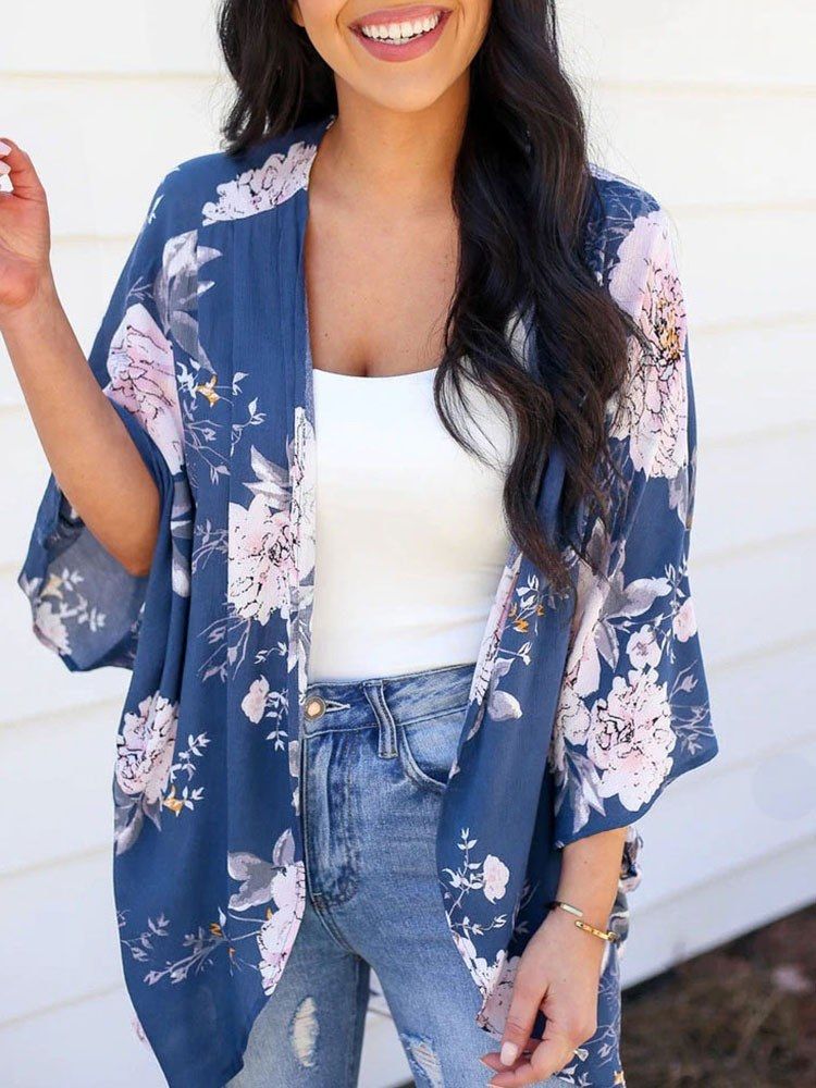 Floral print finish brings a vintage feeling. Open front and wide three quarter sleeves make it elegant and eased.