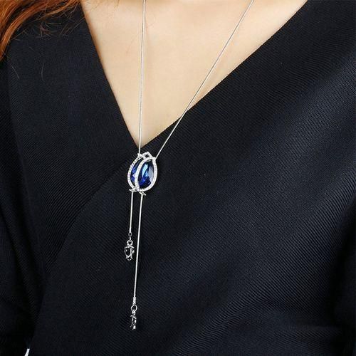 Product details are as follows* SODIAL is a registered trademark. ONLY Authorized seller of SODIAL can sell under SODIAL listings.Our products will enhance your experience to unparalleled inspiration. SODIAL(R) Women Flower Long Adjustable Chain Pendant Sweater Necklace(Tulip blue crystal)