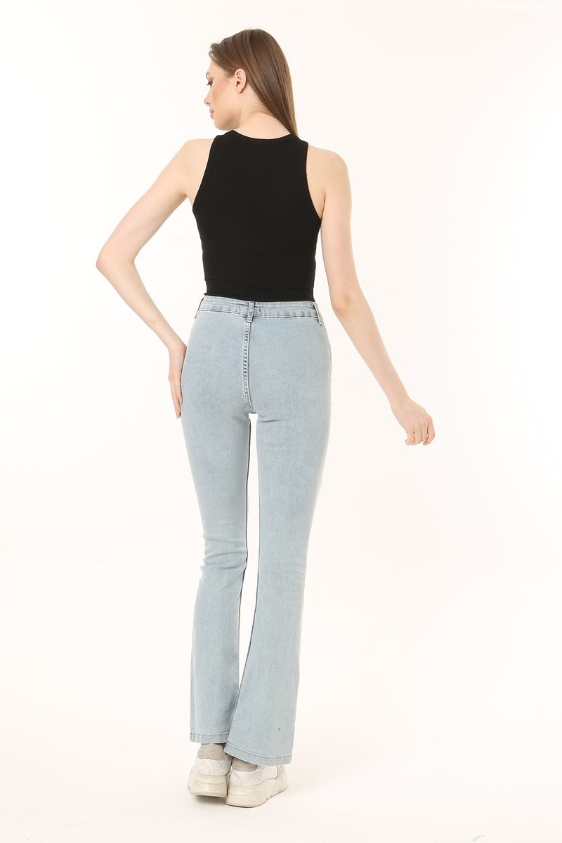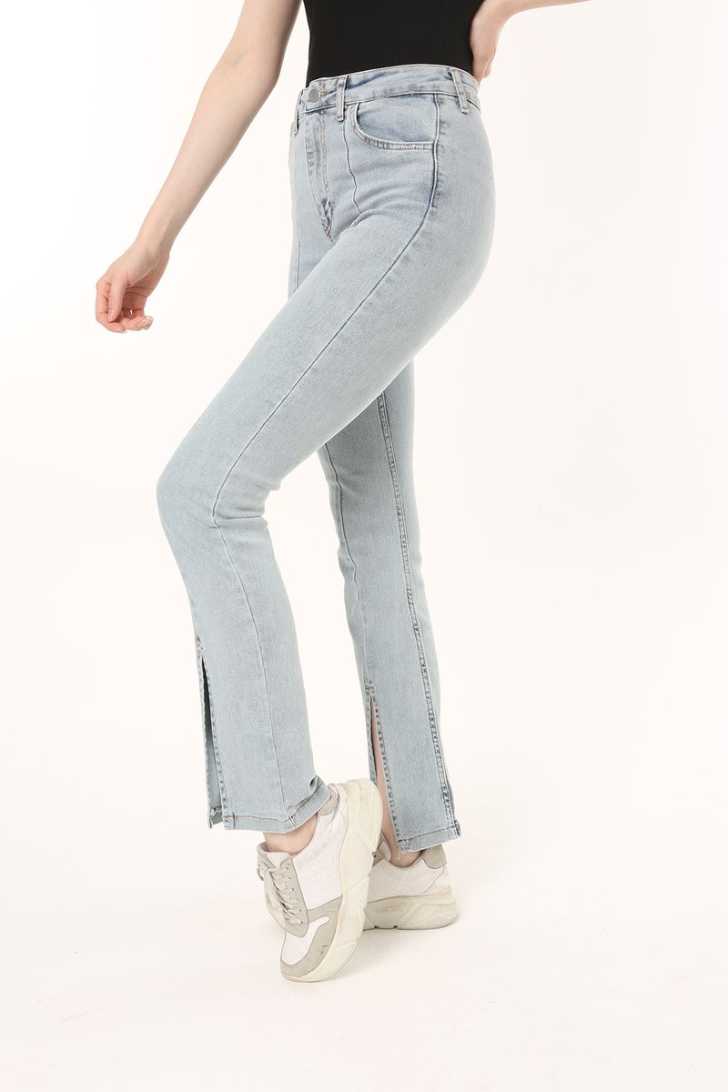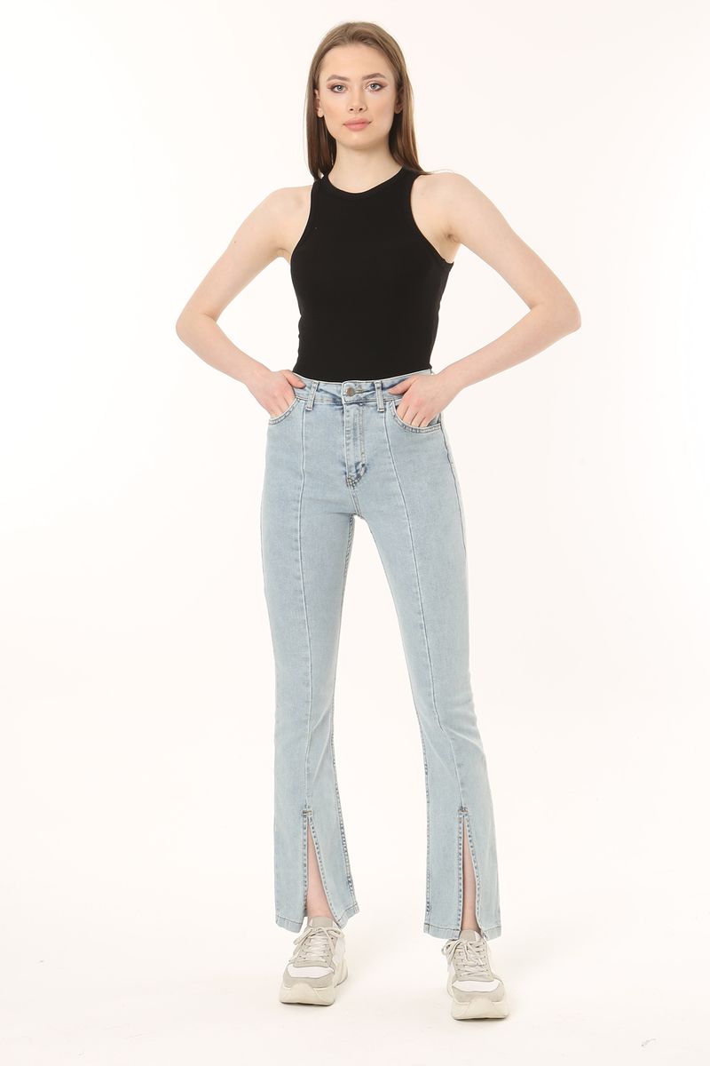 Women Front Hem Slit Detail Flare Fit Jean Trousers,Blue Sky,Women,Spring/Summer,Wash with similar colours. Do not dry with sunlight directly.WARNING! Keep away from fire.