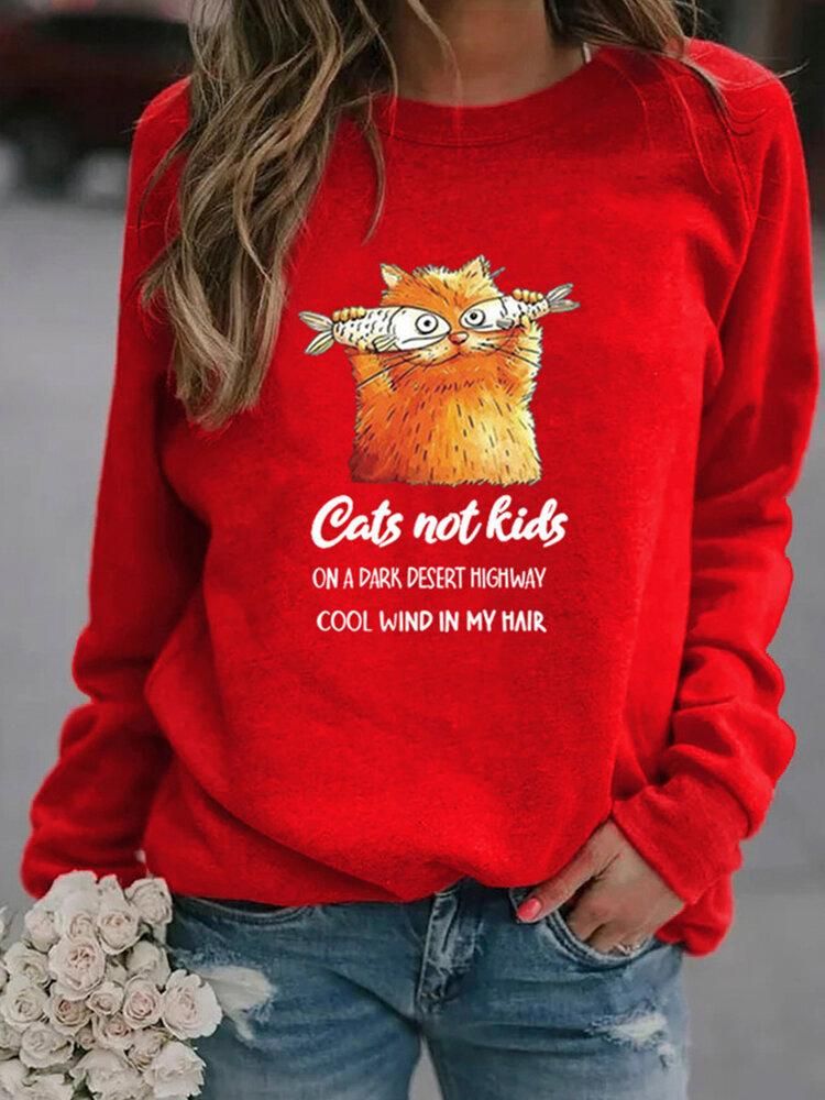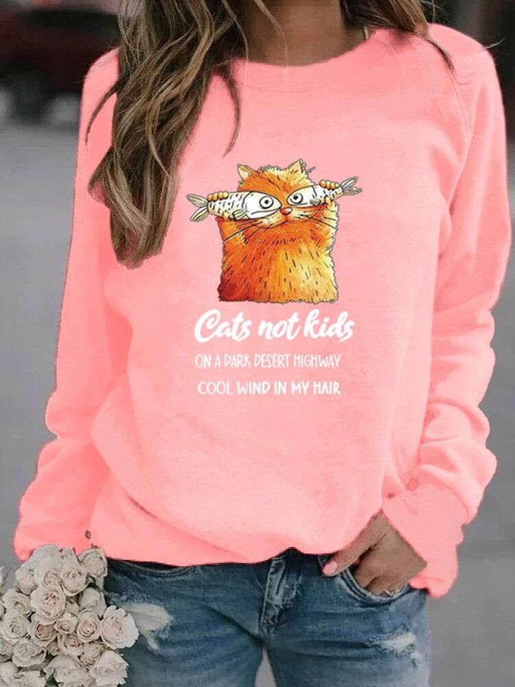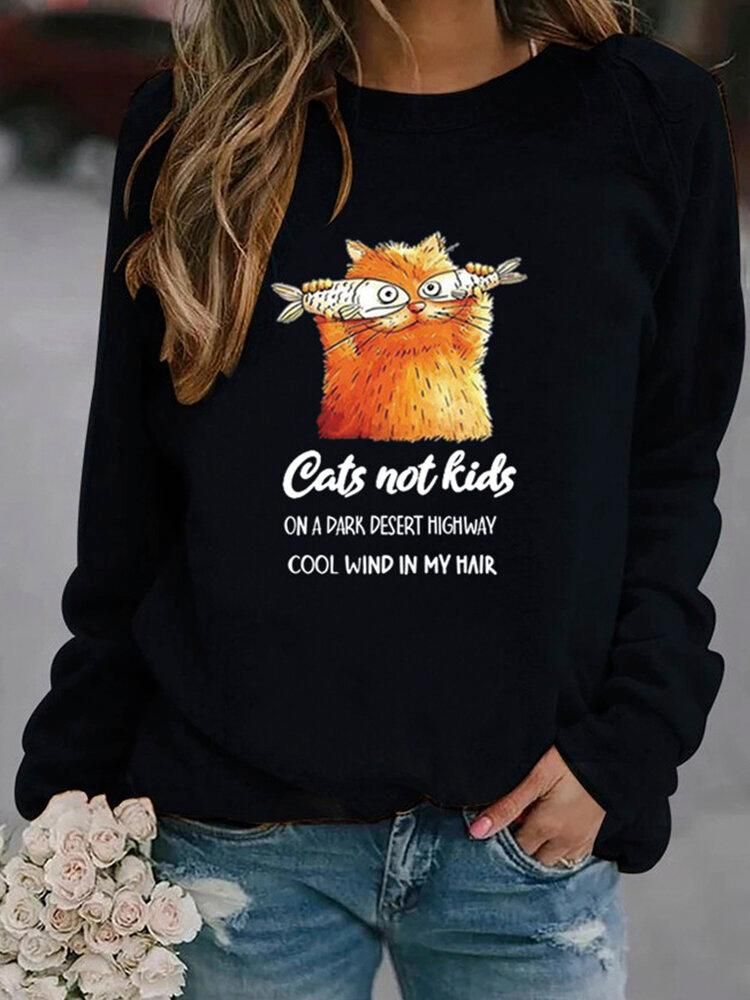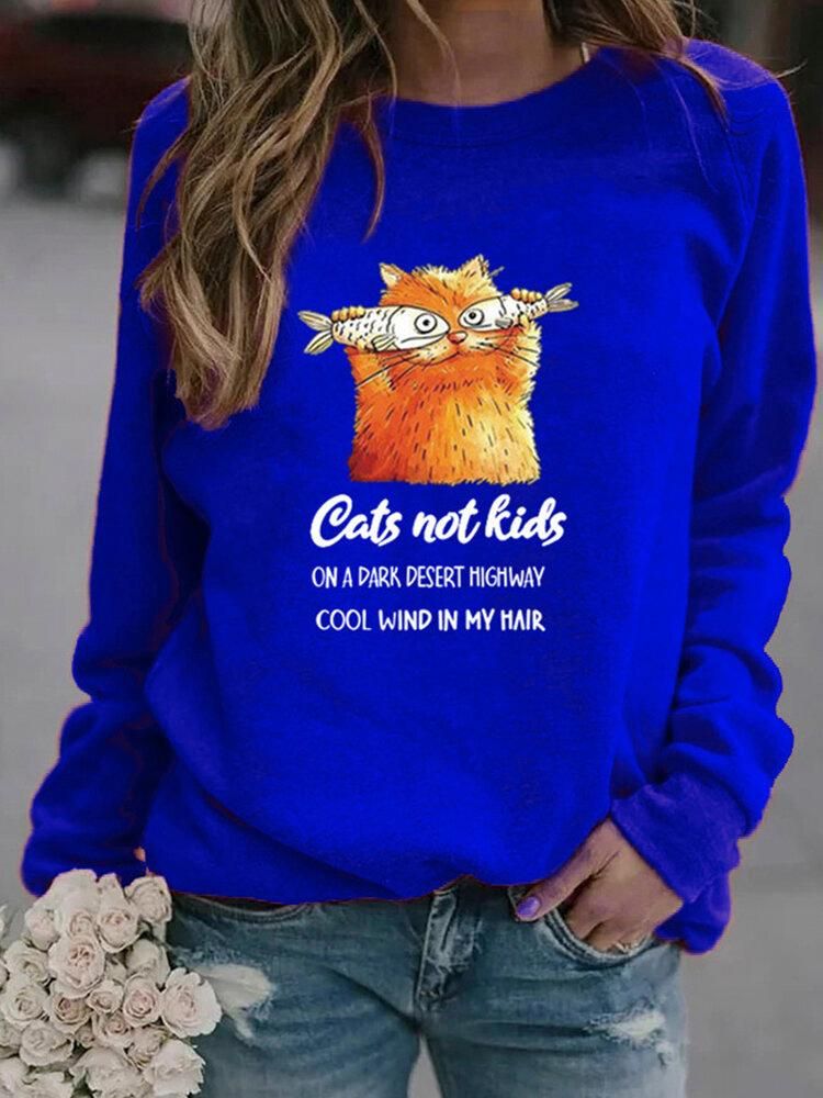 Buy Women Funny Cartoon Cat Printed Pullover Long Sleeve Casual Sweatshirts in Nigeria