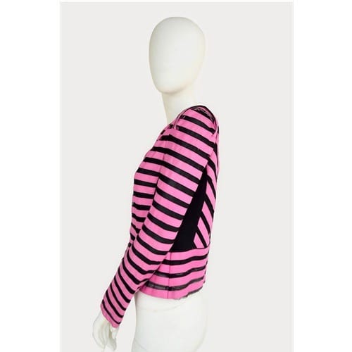 Jaune Rouge Fushia pink leather net mix zipped Jacket