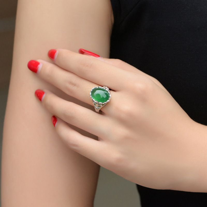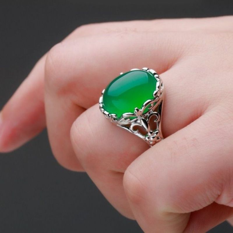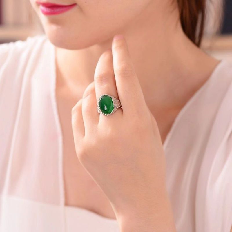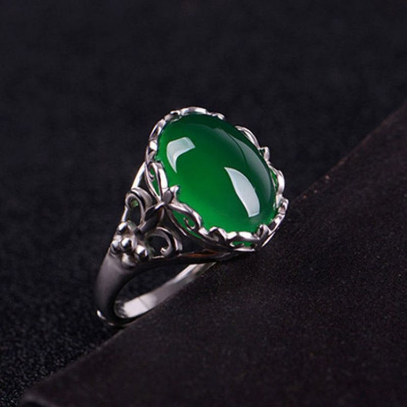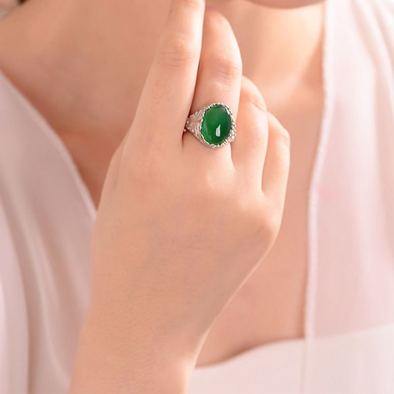 Green Agate Ring Adjustable Open Gemstone Ring Women Jade Silver Rings for Men