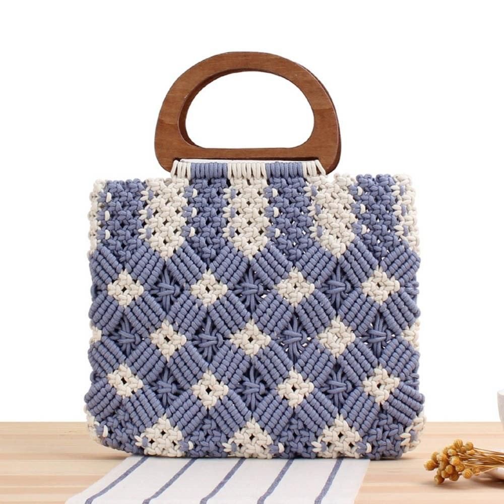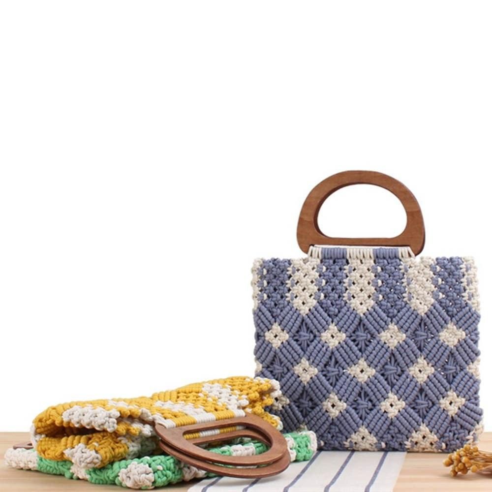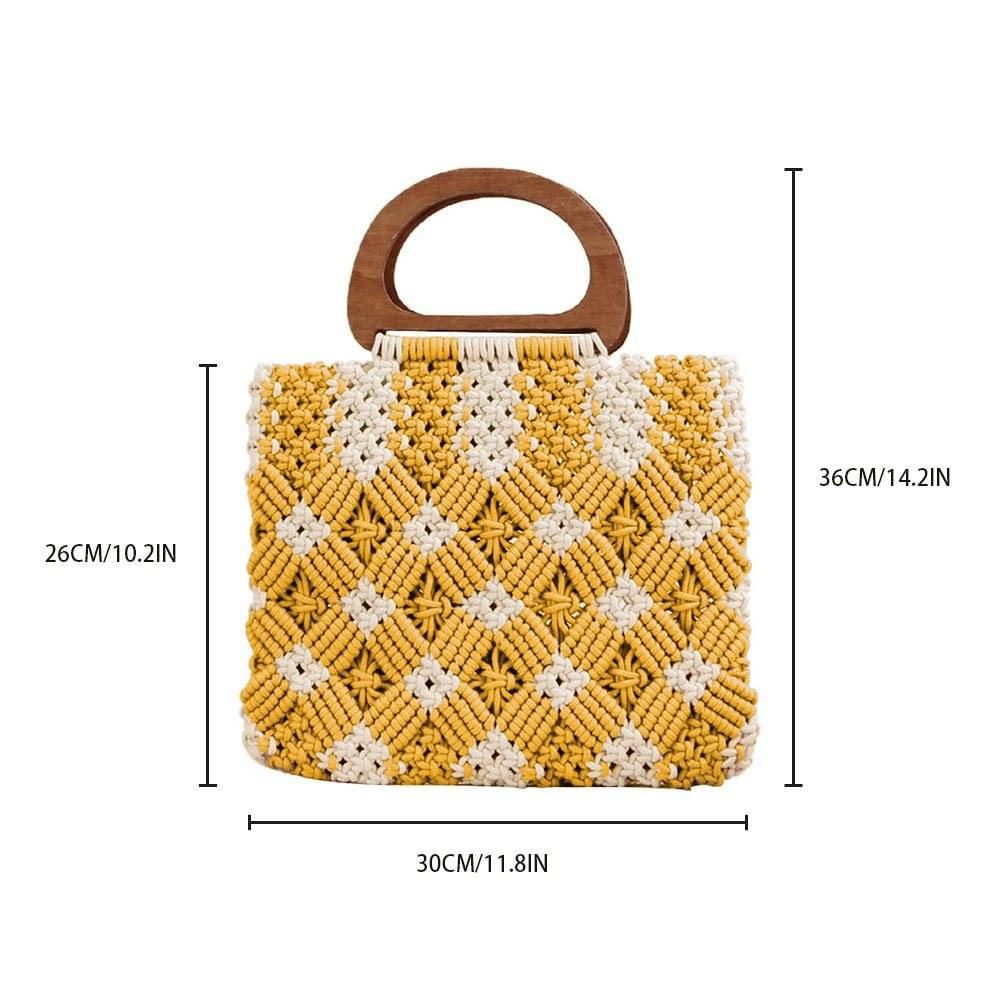 Buy Women Handbag Woven Hollow Plaid Wooden Handle Summer Beach Boho Bag Clutch Purse Tote in Nigeria