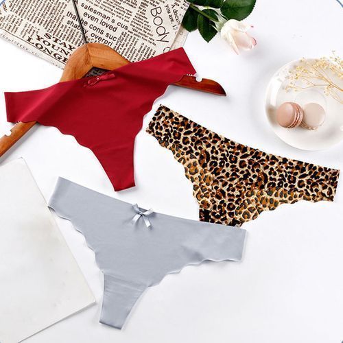 Buy Women High Waist Leopard Stretchy Briefs Bowknot G-strings Thongs-Rose Red in Nigeria