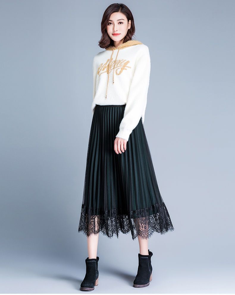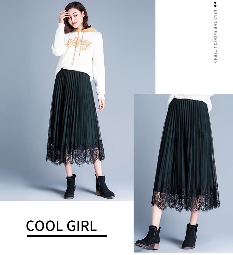 Features: The pleated skirt can be worn on both sides, with sheer mesh on the front and elegant suede pleats on the back. This pleated skirt is made with high quality lace and mesh panels with roman fabrics for a very comfortable feel and has a very elasticated waistband. Taller, more elegant and beautiful!