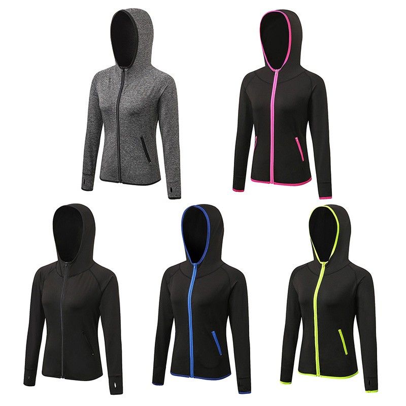 When you go to exercise, it\'s always better to wear sportswear. This hooded sport coat features long sleeves, zipper closure and pockets. And it is quite stretchy and quick-dry, so you don\'t need to worry about sweating.