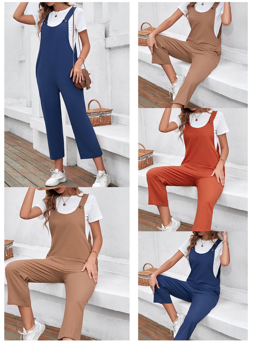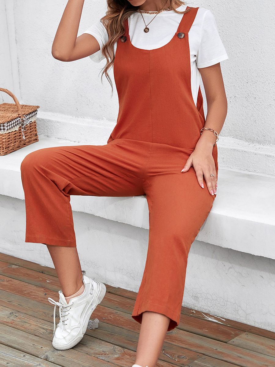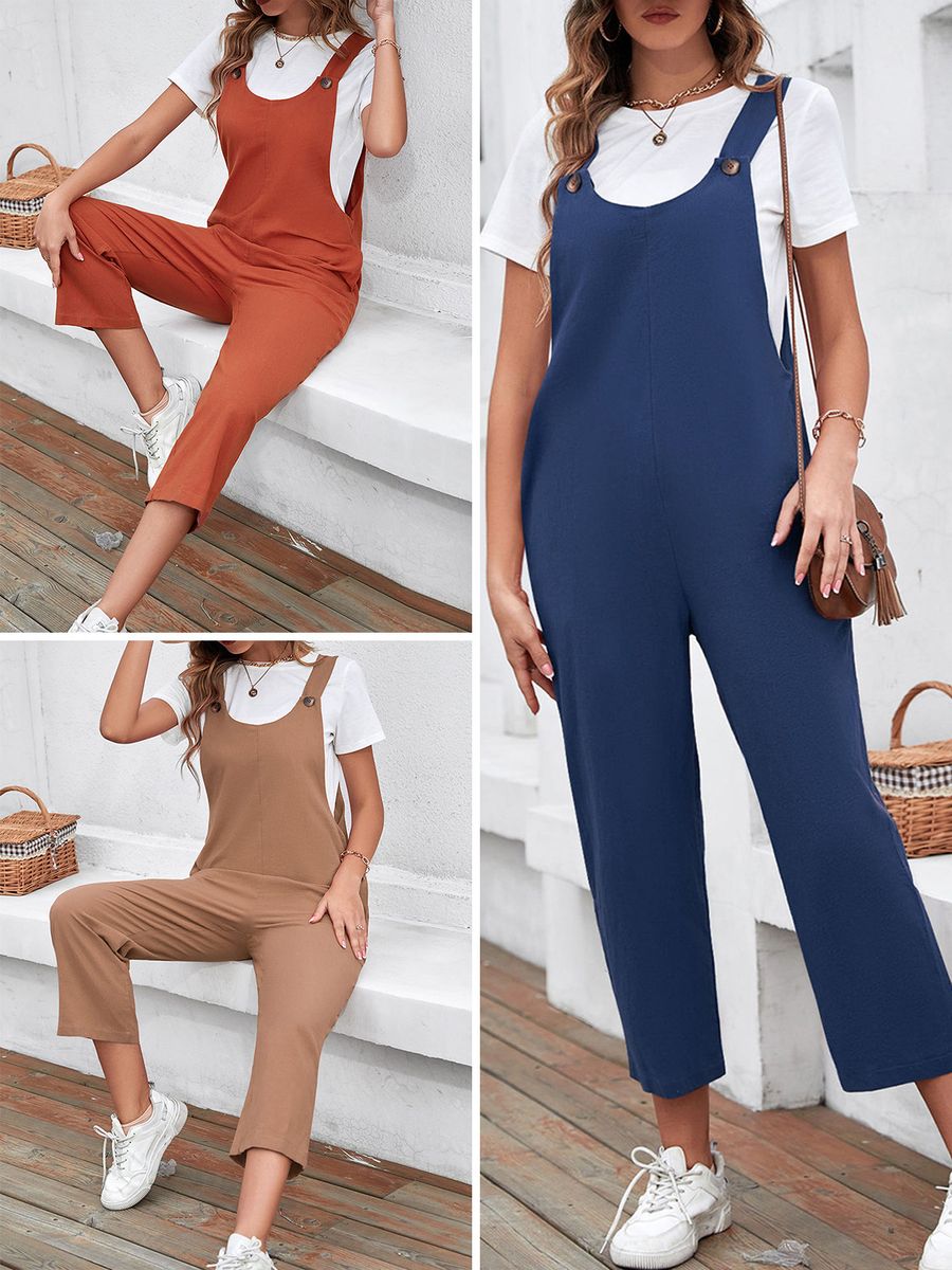 Casual solid jumpsuit in 95% Polyester, 5% Spandex.