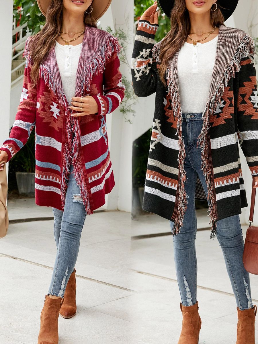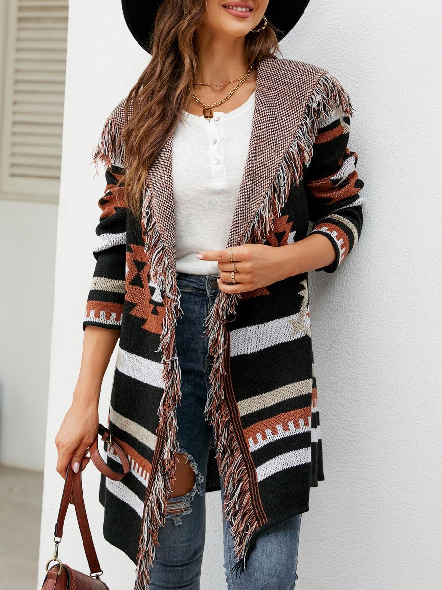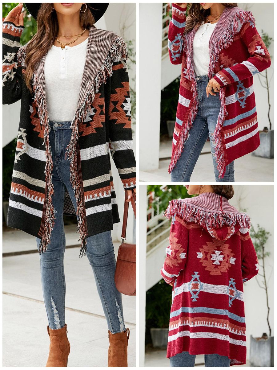 Buy Women Knitted Cardigan Open Front Hooded Tassels Long Sleeve Casual Coats in Nigeria
