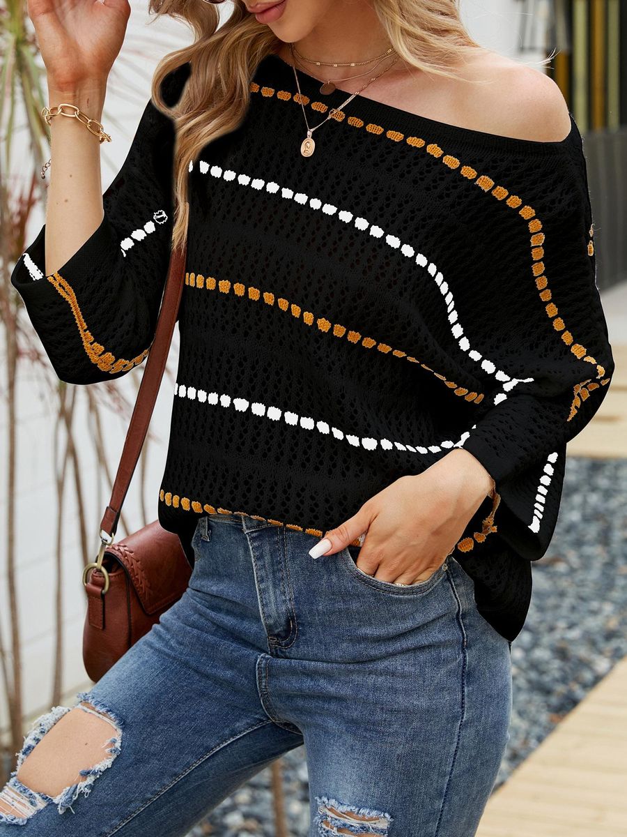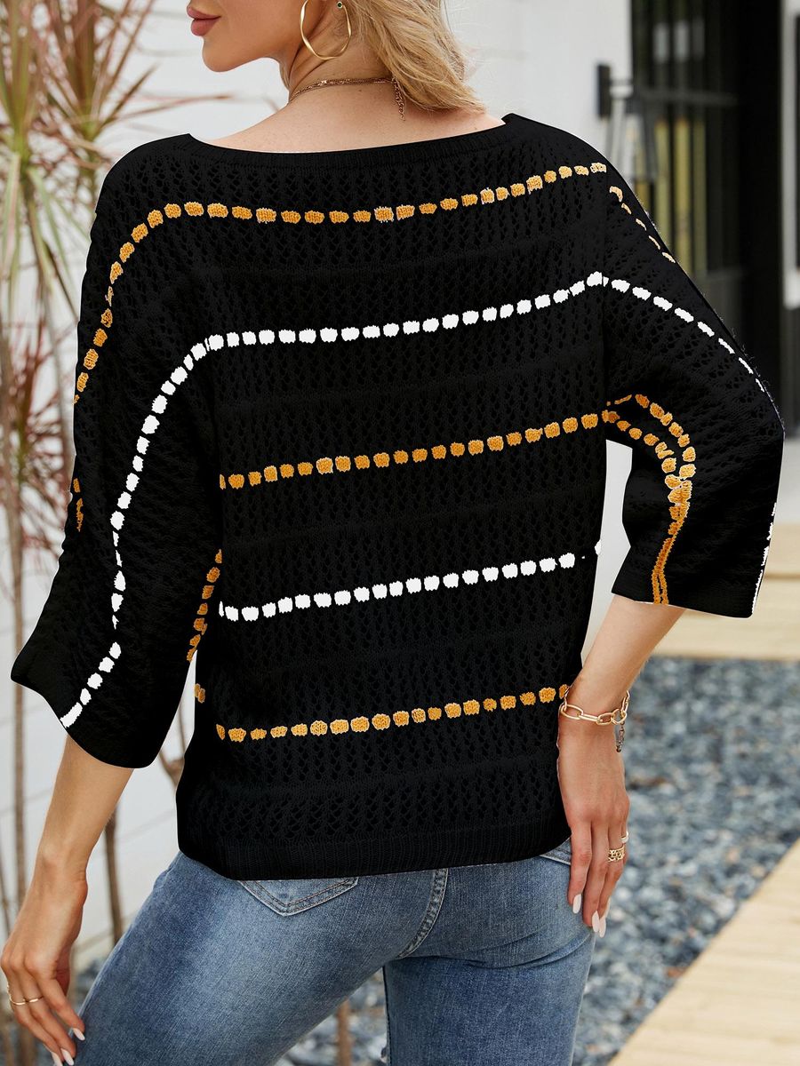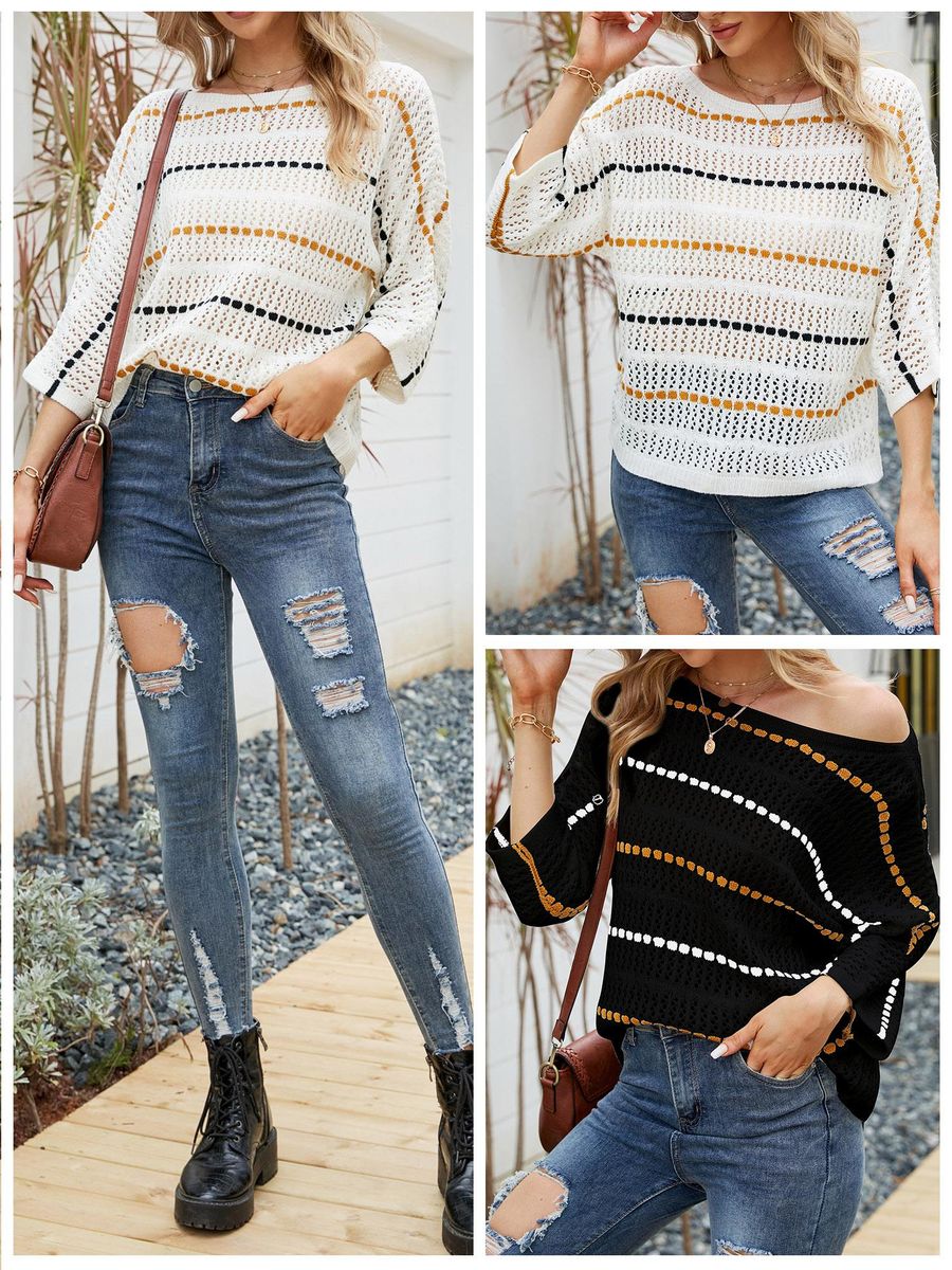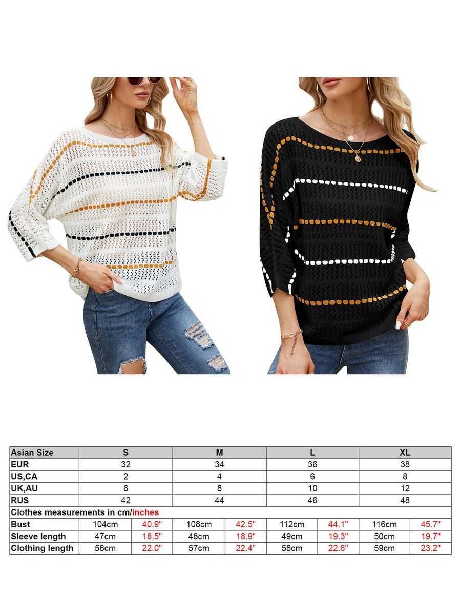 Buy Women Knitted Pullovers Striped Hollow out 3/4 Sleeve Boho Casual Knitted Sweaters in Nigeria