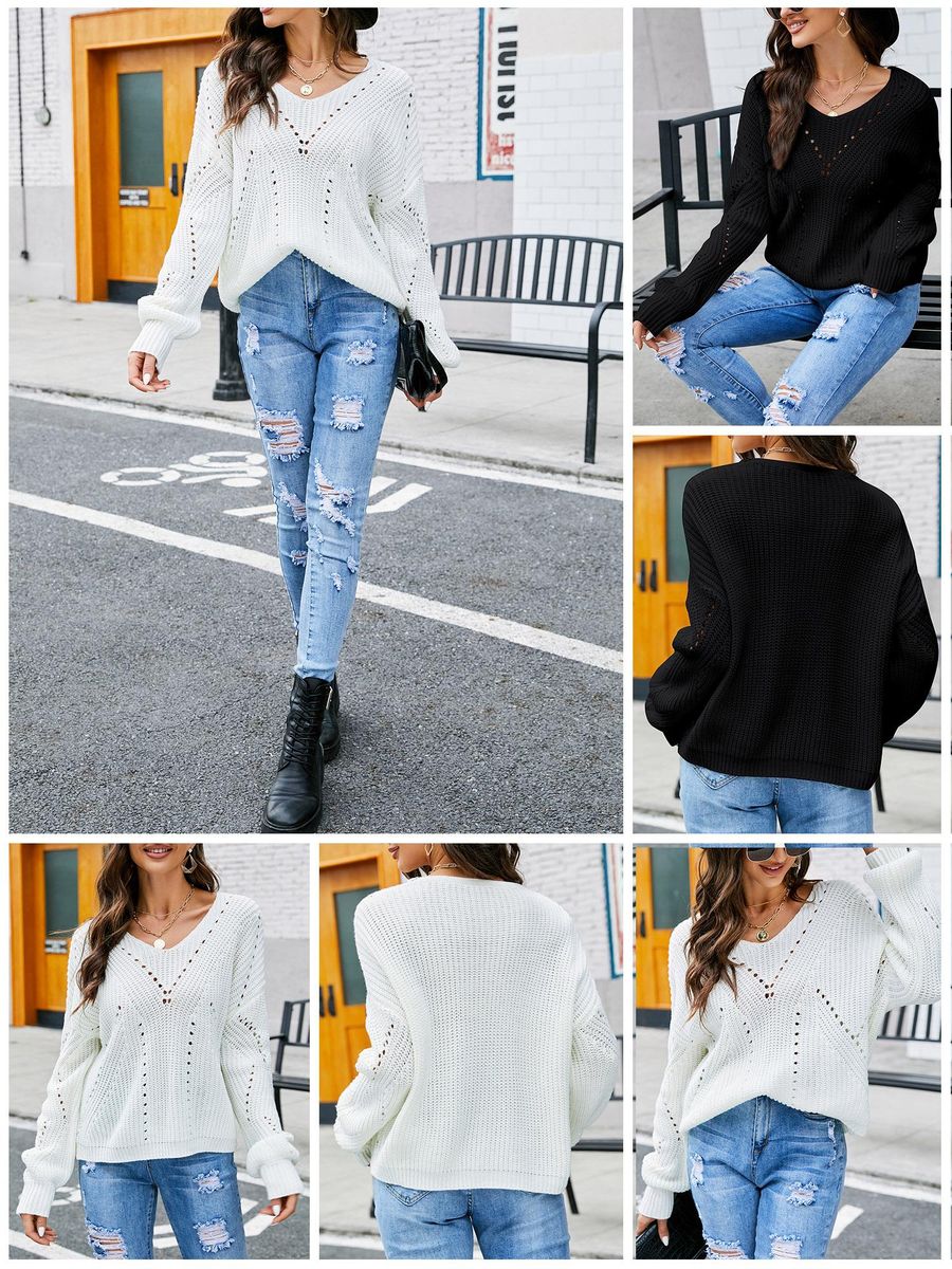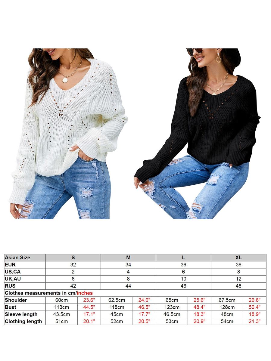 Buy Women Knitted Pullovers V Neck Hollow out Long Sleeve Casual Knitted Sweaters in Nigeria