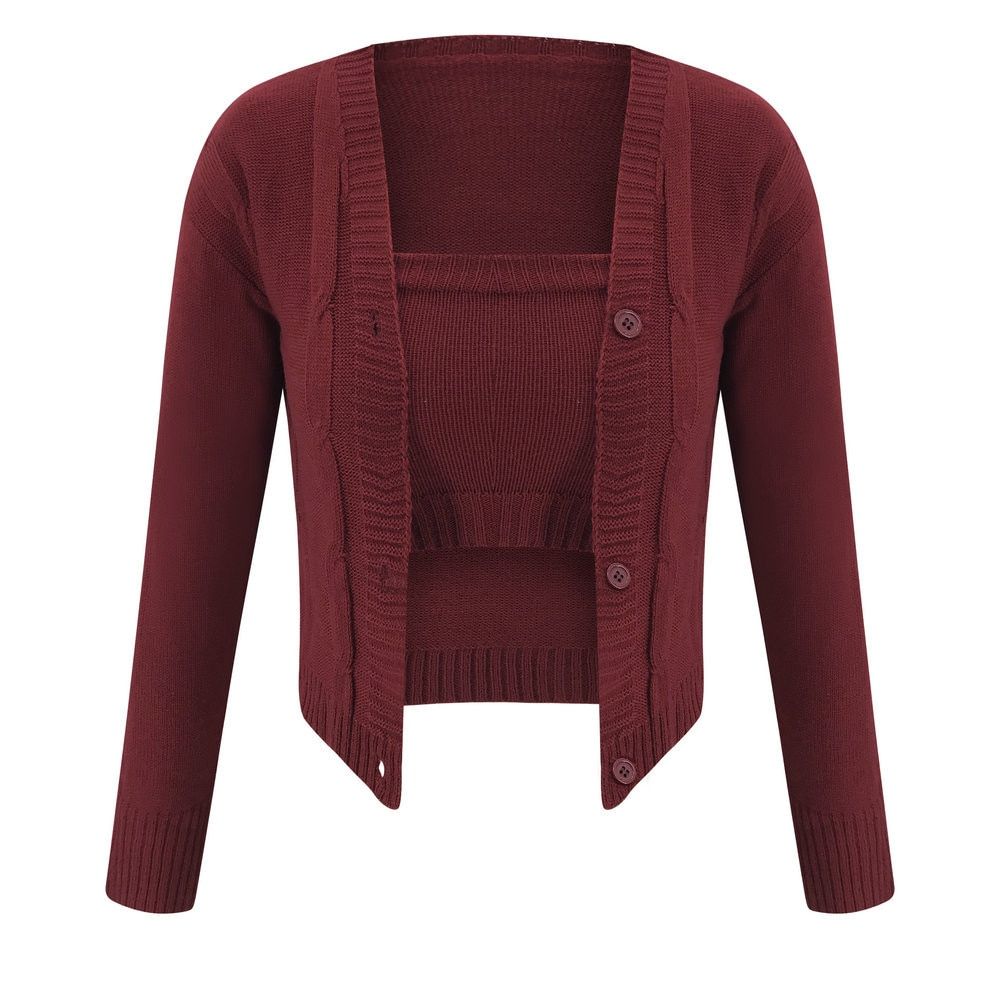 1X Fashion Women Knitted Sweaters Sets Strapless Bra Crop Tops+Mini Skirts+Long Sleeve Cardigan Coats 3Pcs Casual Solid Ladies Sets