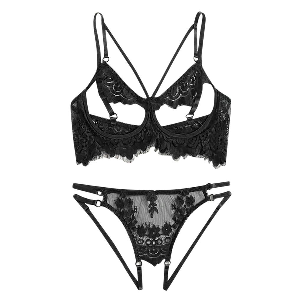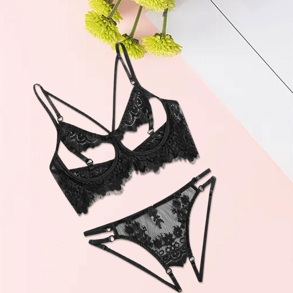 Women Lace Bra Panty;Two Piece Rose Nightwear for Women;Bralette Lace Sleepwear Nightwear ;Panty Nightwear ;Crotchless Bodysuit Underwear Garter;Bralette Set Women Bra Transparent Hollow Out