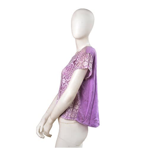 Buy Women Lace Overlay Mix Short Sleeve Top - Purple in Nigeria