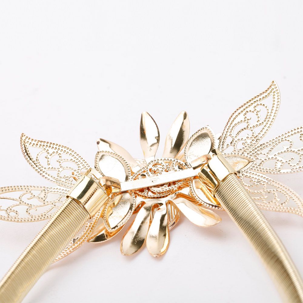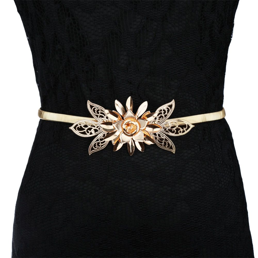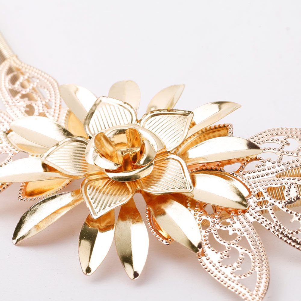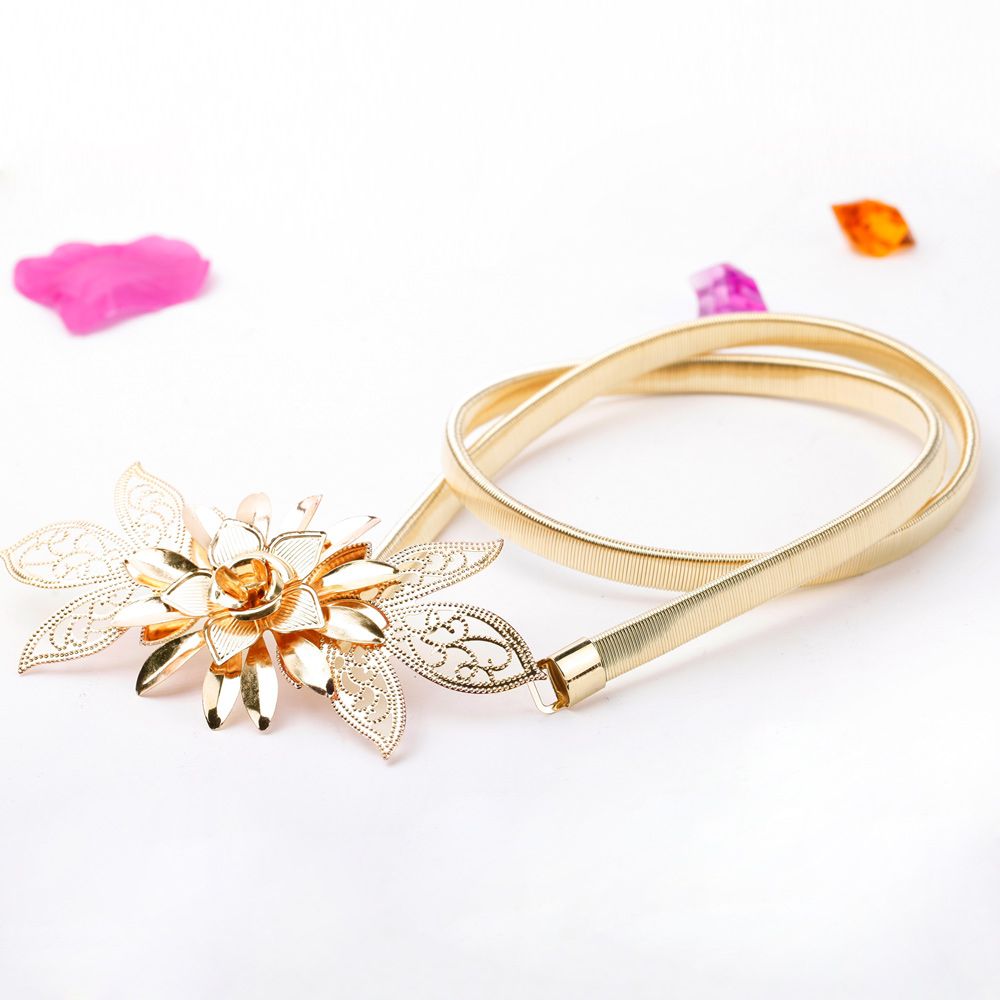 This metal belt is an ideal choice for you! The flower embellished design effortlessly adds glamour and elegance. Its good elasticity makes it fit for most people. Come and get one!