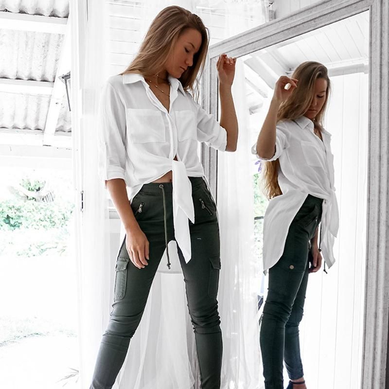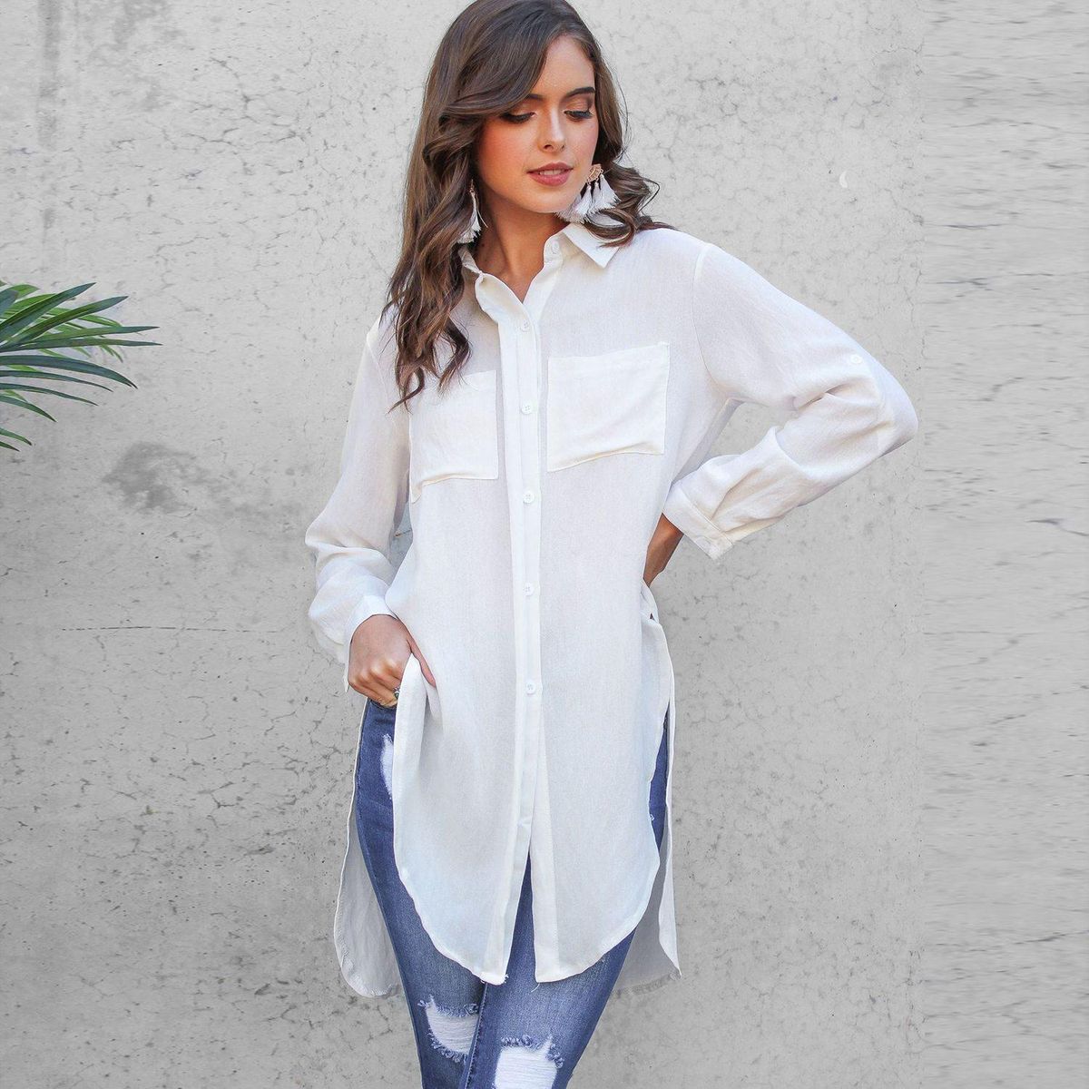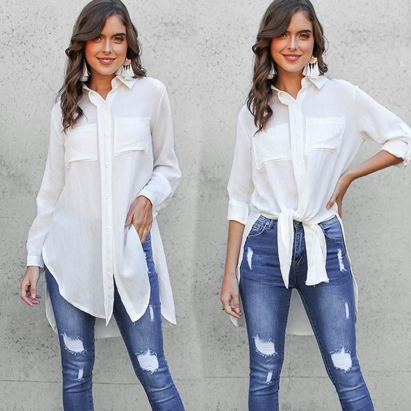 Features: Front Pockets,Asymmetric Hem,Side Slit,Roll-up Sleeve