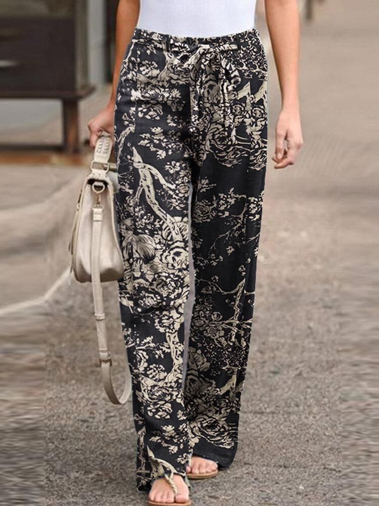 Buy Women Leisure Cotton Contrast Color Elastic Waist Straight Pants with Side Pockets in Nigeria