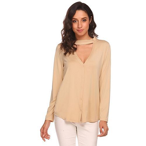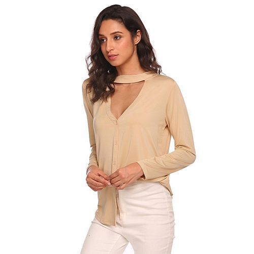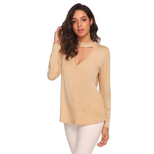 Specifications of Women Long Sleeve Choker V Neck Front Button Cardigan V Back Solid Slim Blouse ( Khaki ) SKUFA203AA016QK2NAFAMZ Product mo cheng Weight (kg)0.3 ColourKhaki Product warrantyn/a