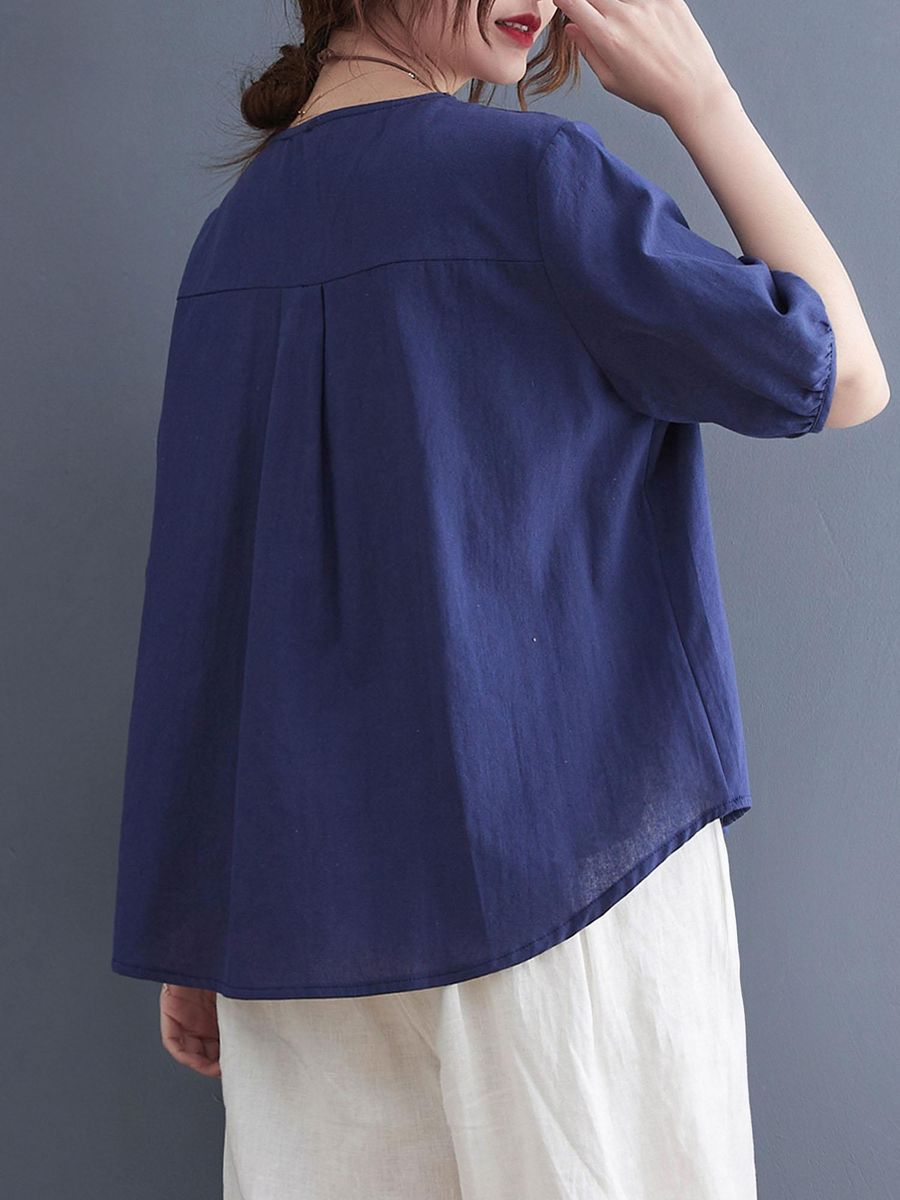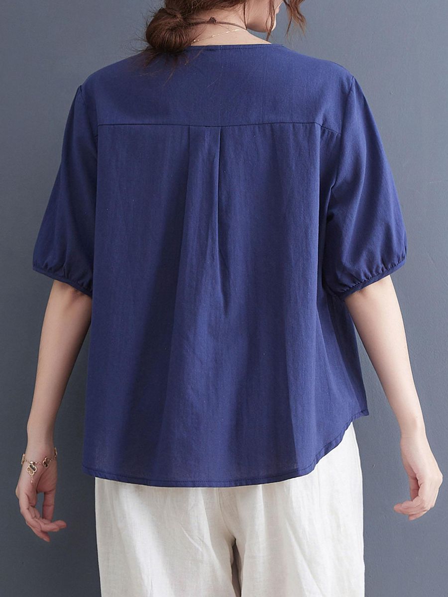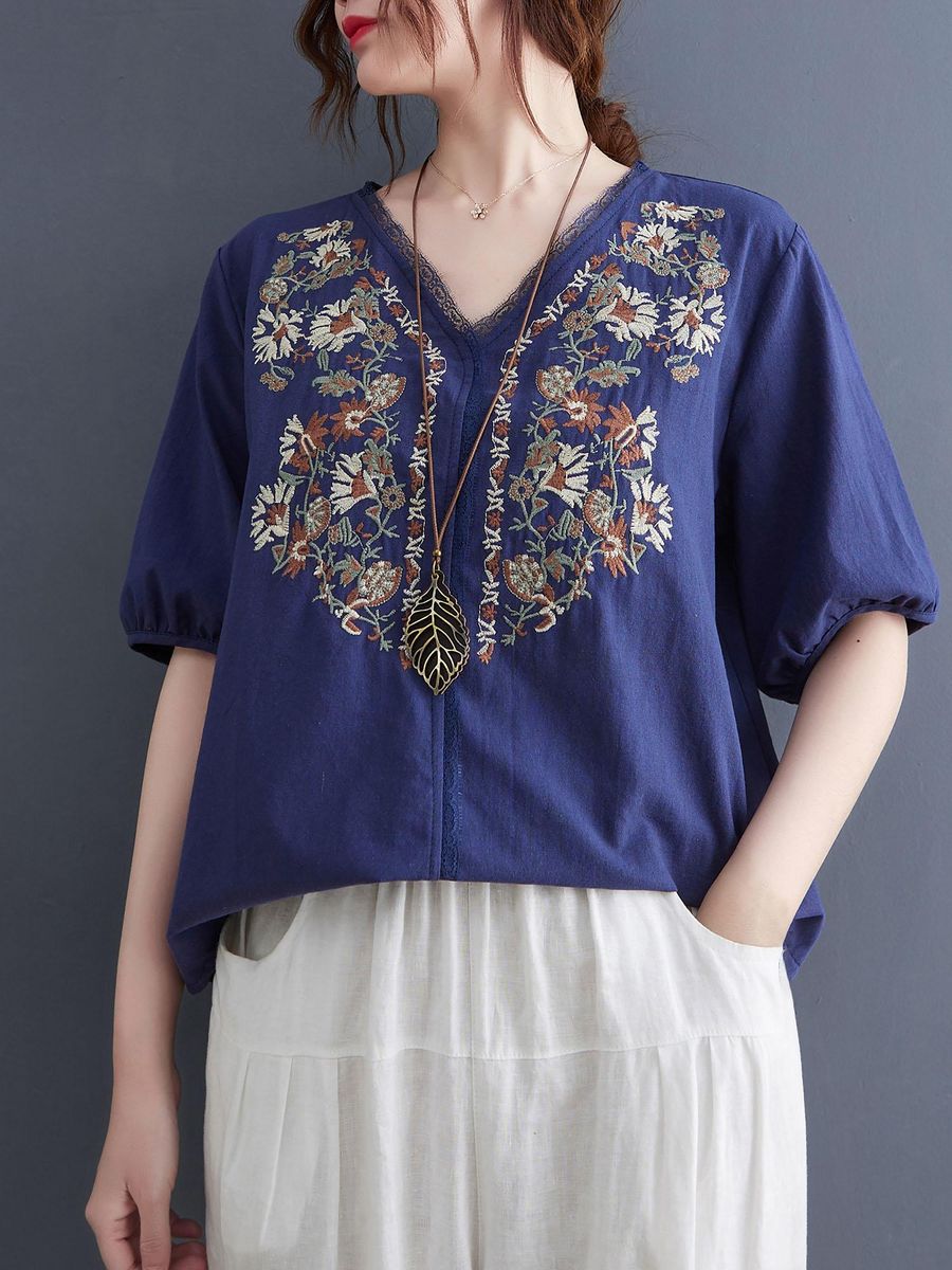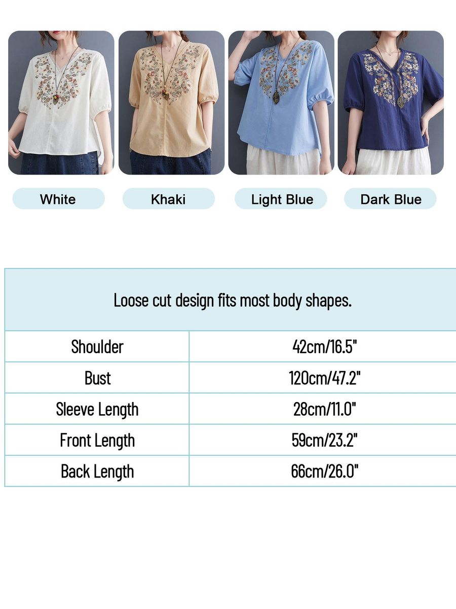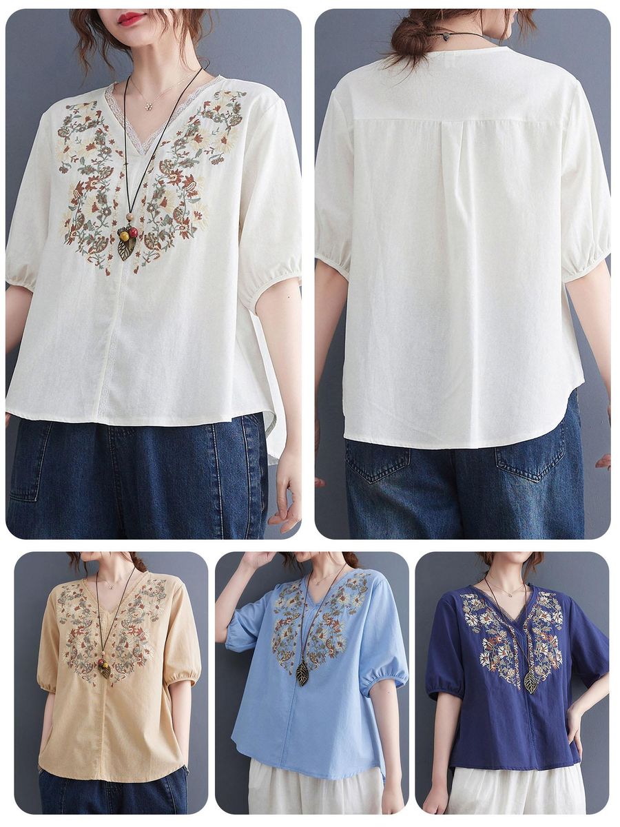 Buy Women Loose Blouse Embroidery Half Sleeved Plus Size Vintage Holiday T-Shirts in Nigeria