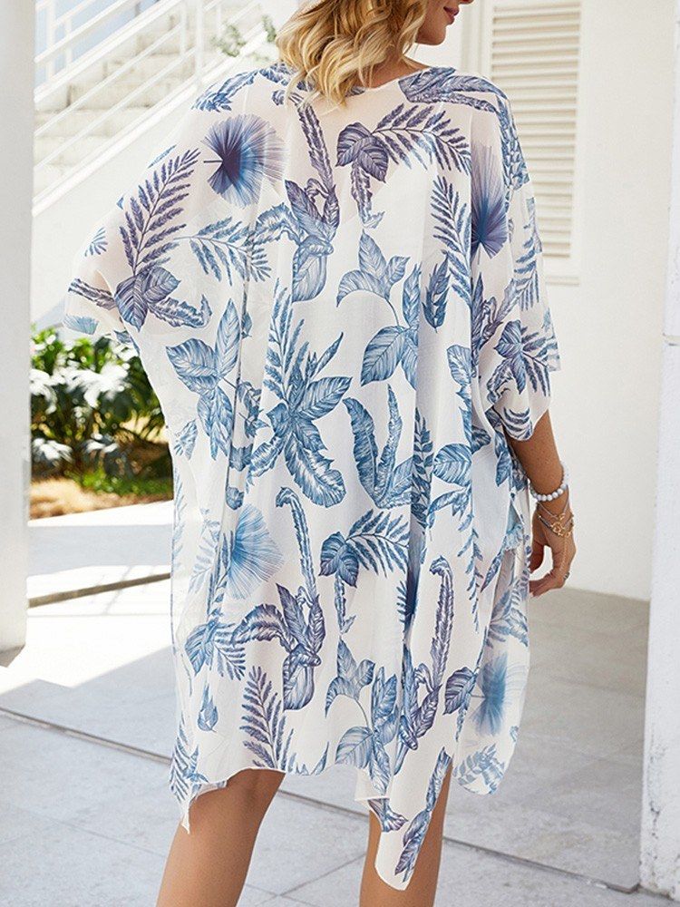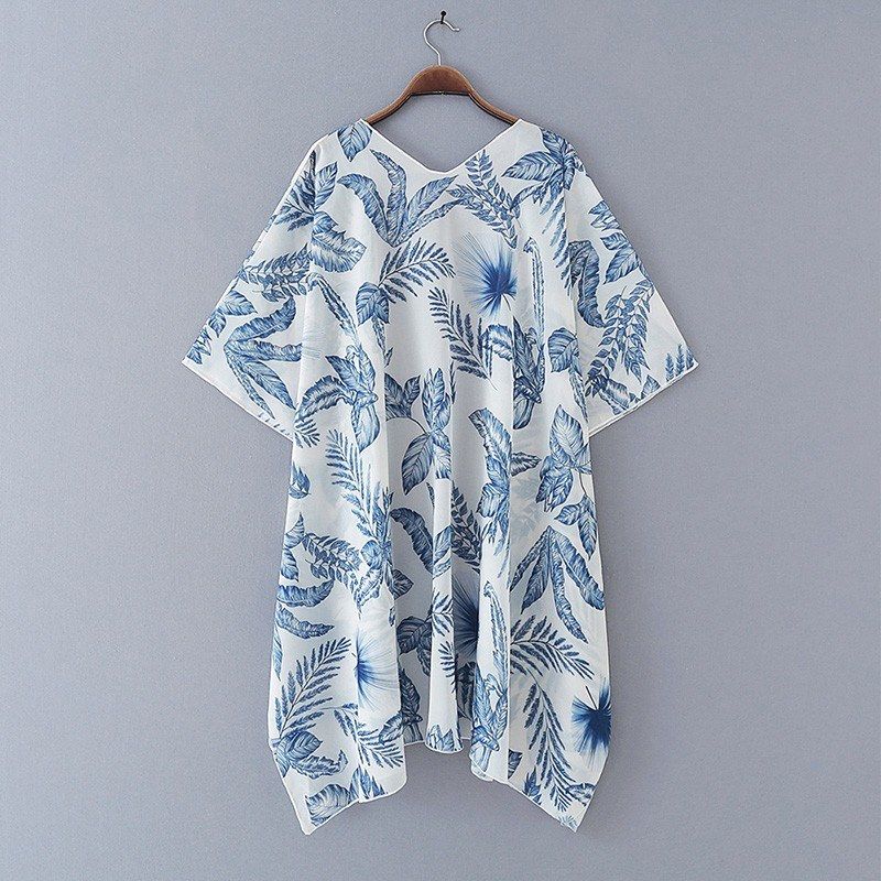 Step into summer with this loose kimono style cover ups. It has chic leaf print, open front, wide half sleeves and slit sides. When paired with tanks tops, shorts, jumpsuits, or swimsuits, it brings you a romantic and stylish holiday style.