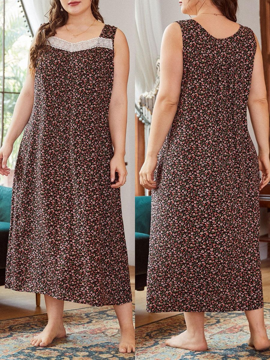 Buy Women Lounger Dress Floral Printed Sleeveless Plus Size Loose Nightgowns Lounging Pyjamas in Nigeria