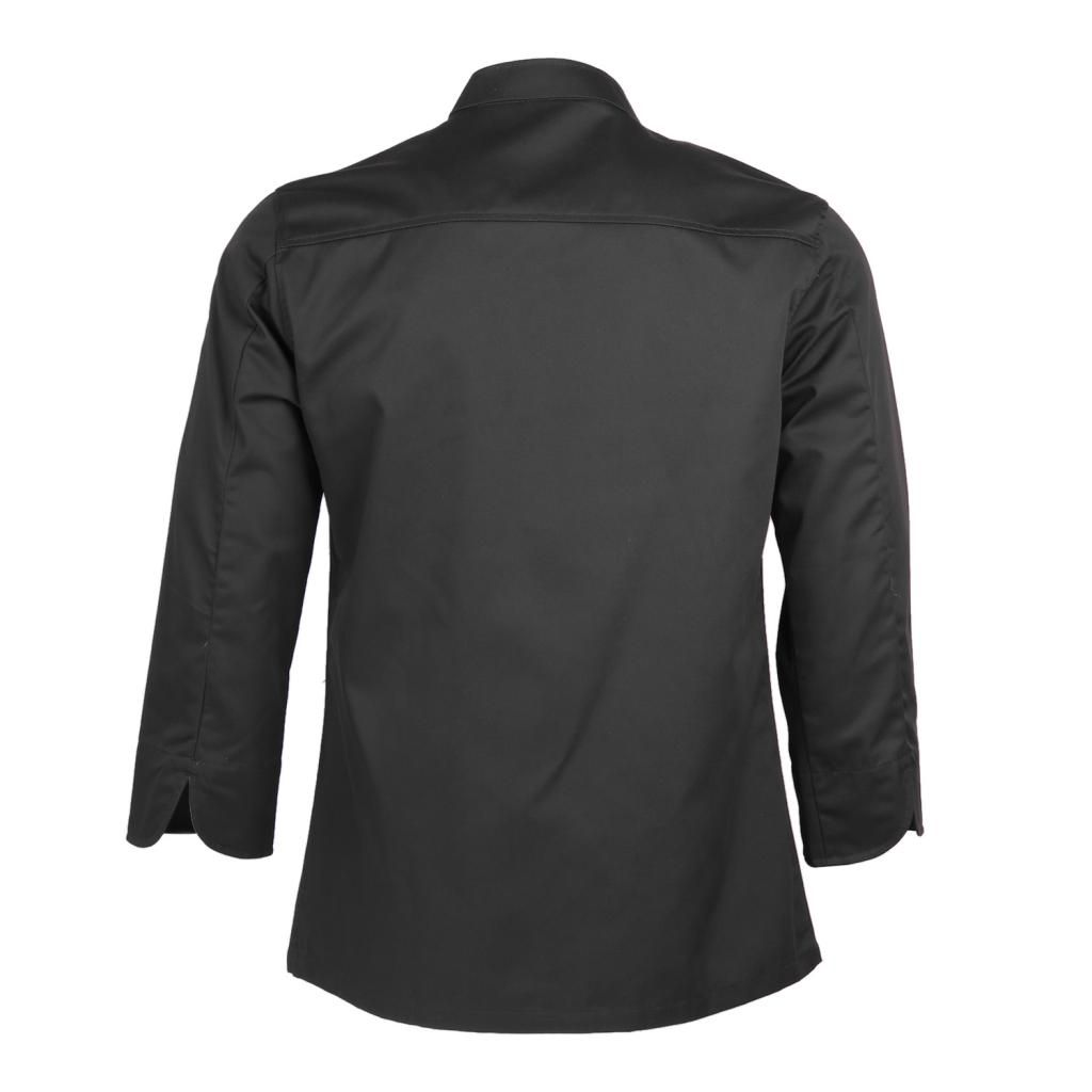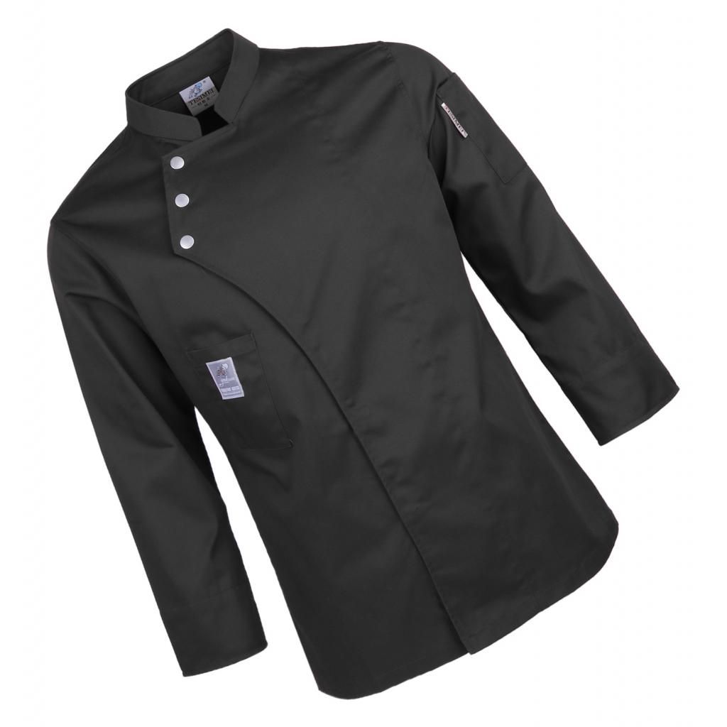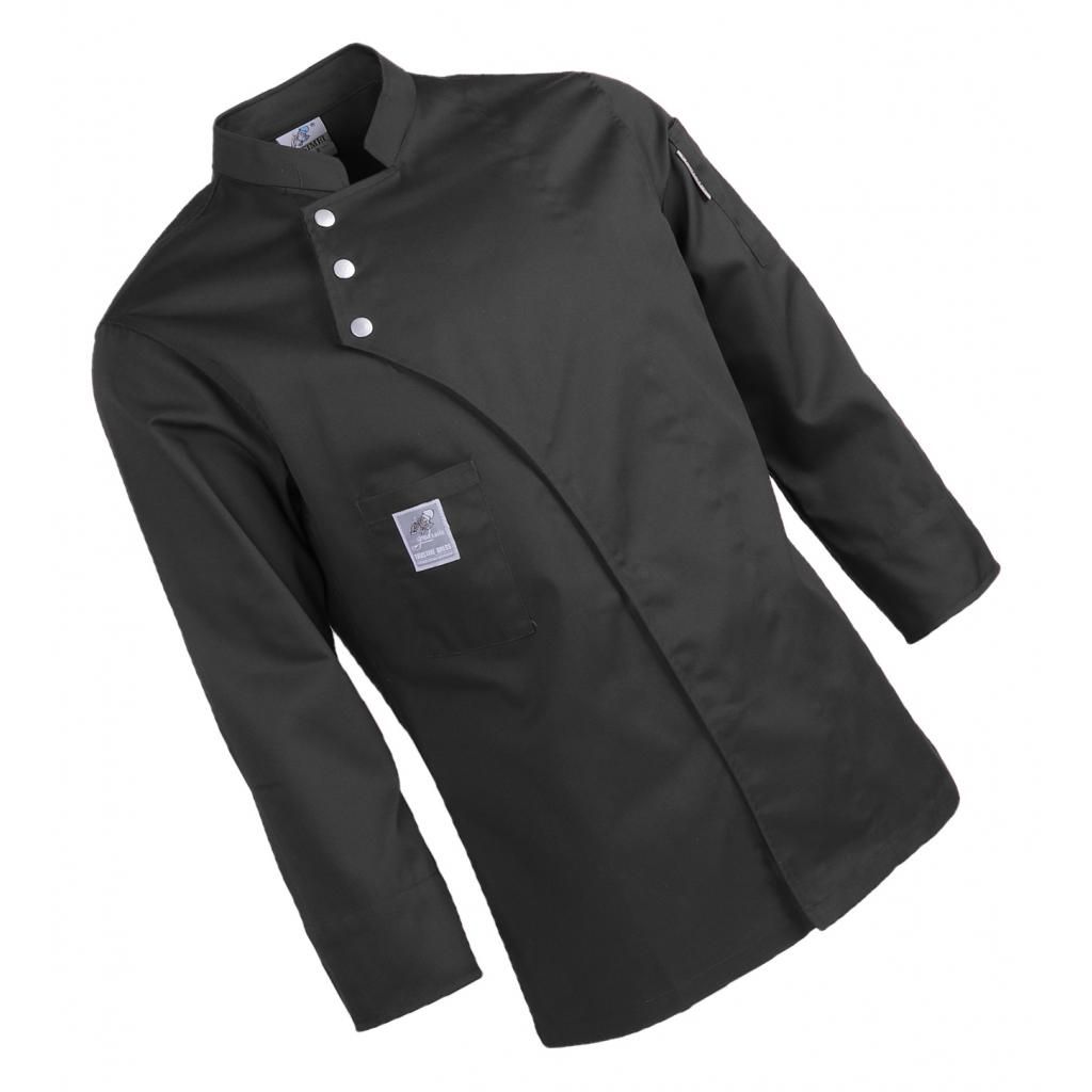 Solid color, single-breasted and long sleeves chef shirt, having left shoulder pockets and right pockets, mandarin collar.