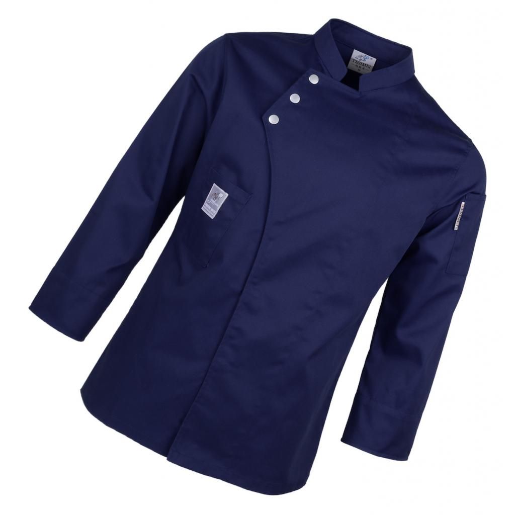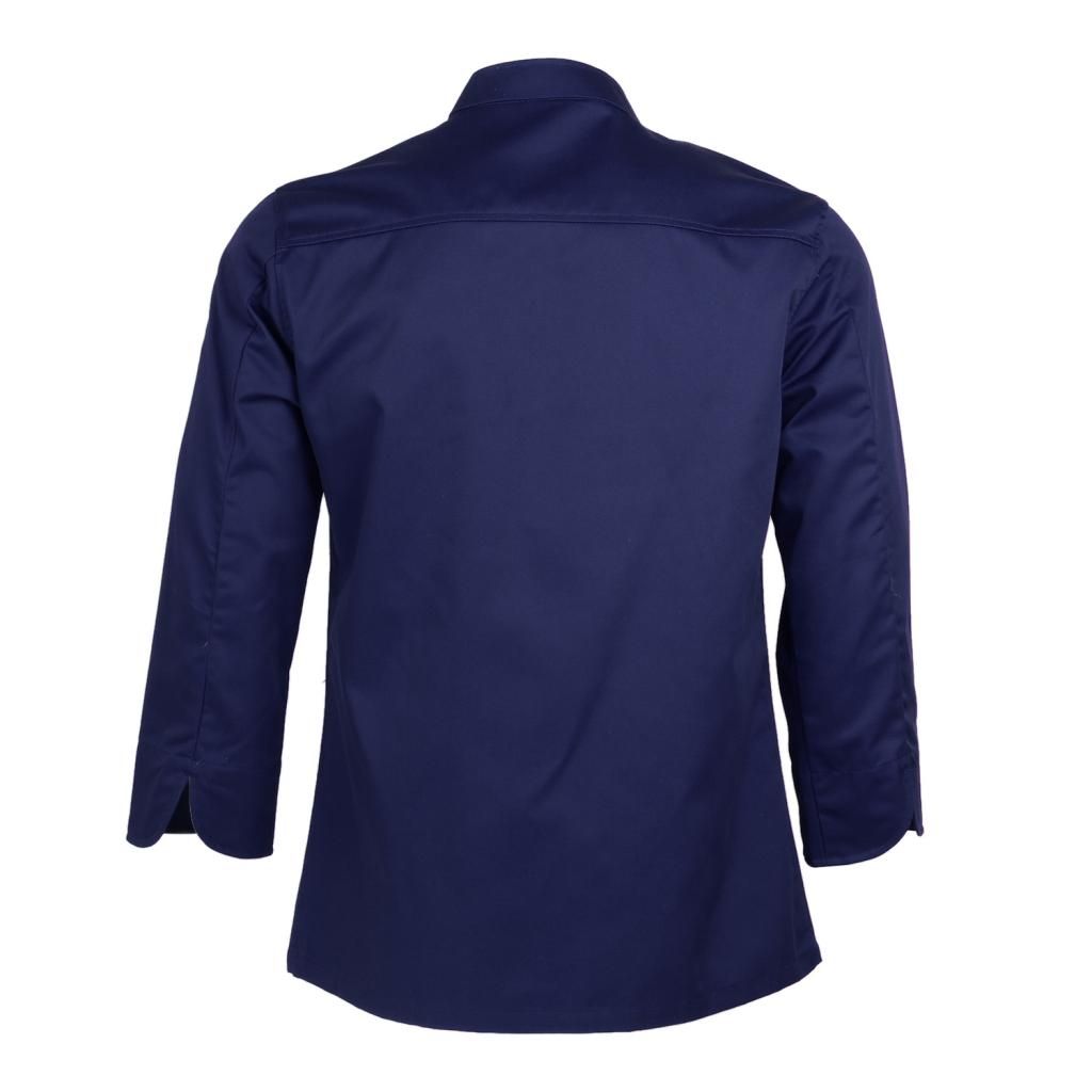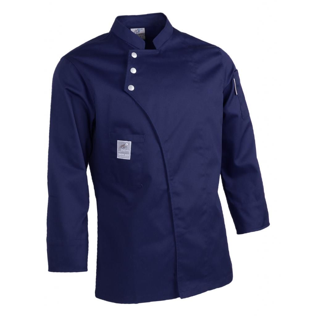 Solid color, single-breasted and long sleeves chef shirt, having left shoulder pockets and right pockets, mandarin collar.