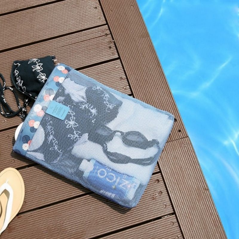1 * Women Mesh Beach Bag Swimming Bolsa Praia Cosmetic Pouch Na