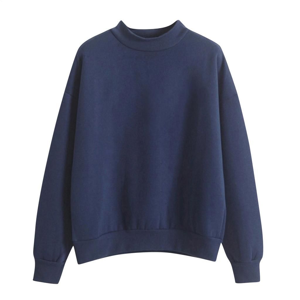 Women O-Neck Solid Color Turtleneck Long Sleeve Plus Velvet Sweatshirt