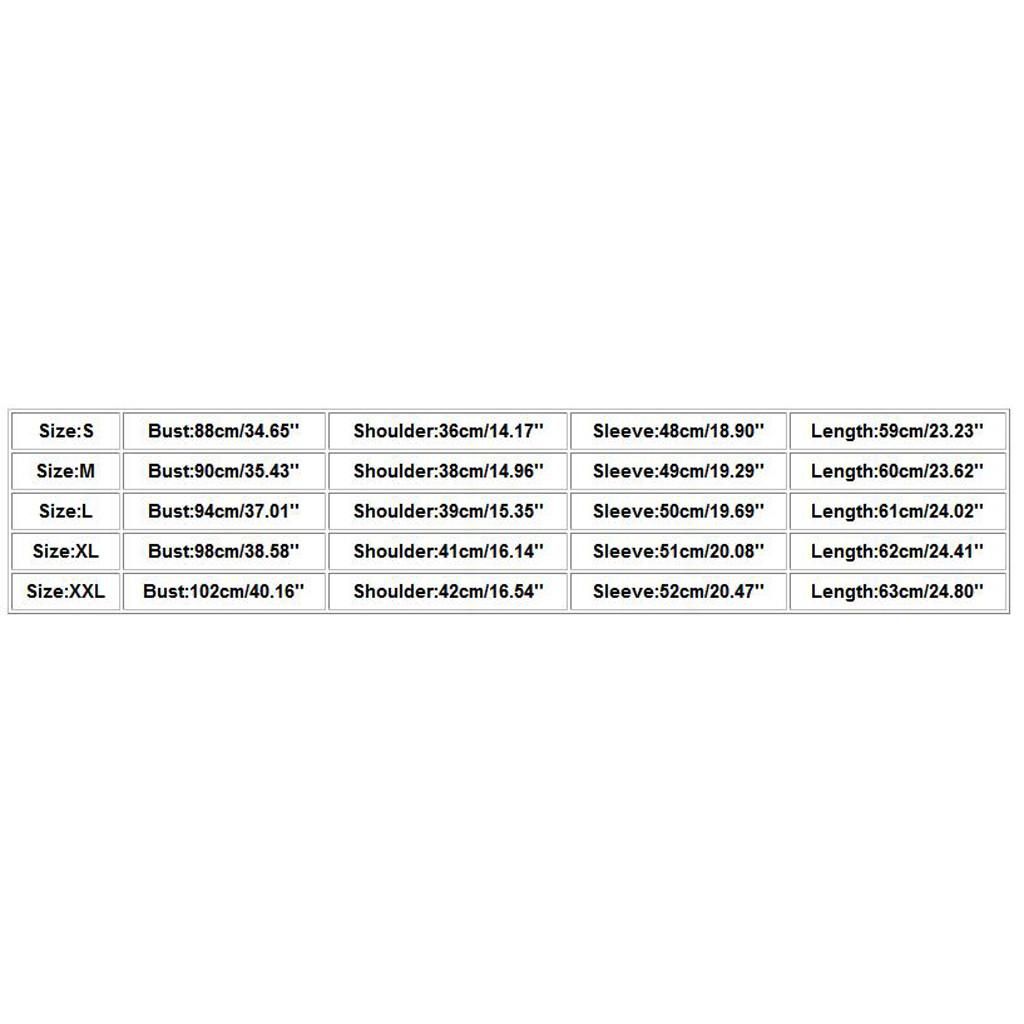 Size: XXL Bust: 102cm/40.16'' Shoulder: 42cm/16.54'' Sleeve: 52cm/20.47'' Length: 63cm/24.80''
