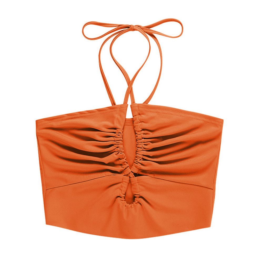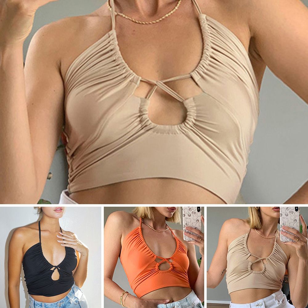 Sexy cropped top with open back, adjustable halter strap, plunge neck, and hollow out detailing. Pair it with jeans or shorts for party, club, beach and holiday.