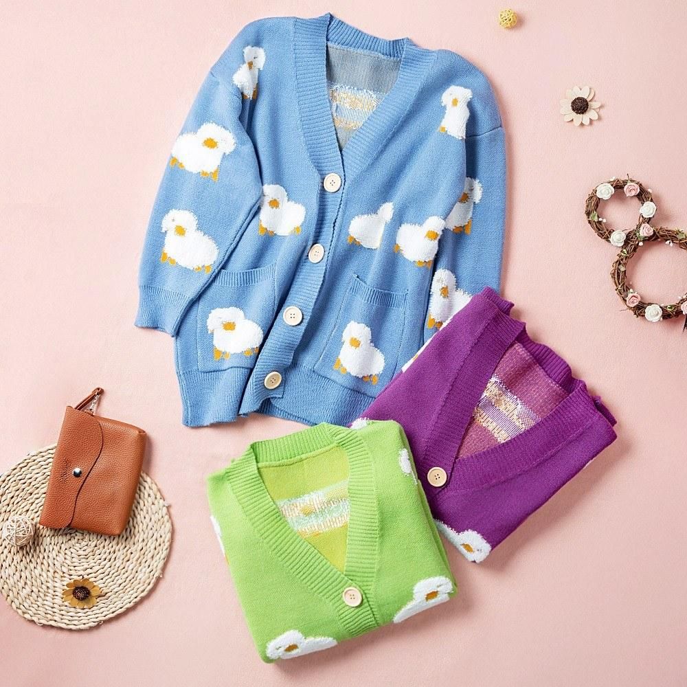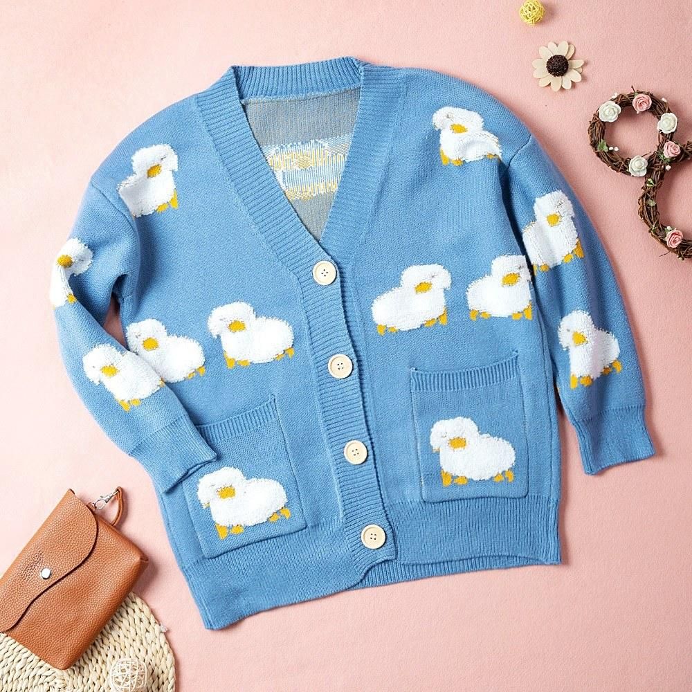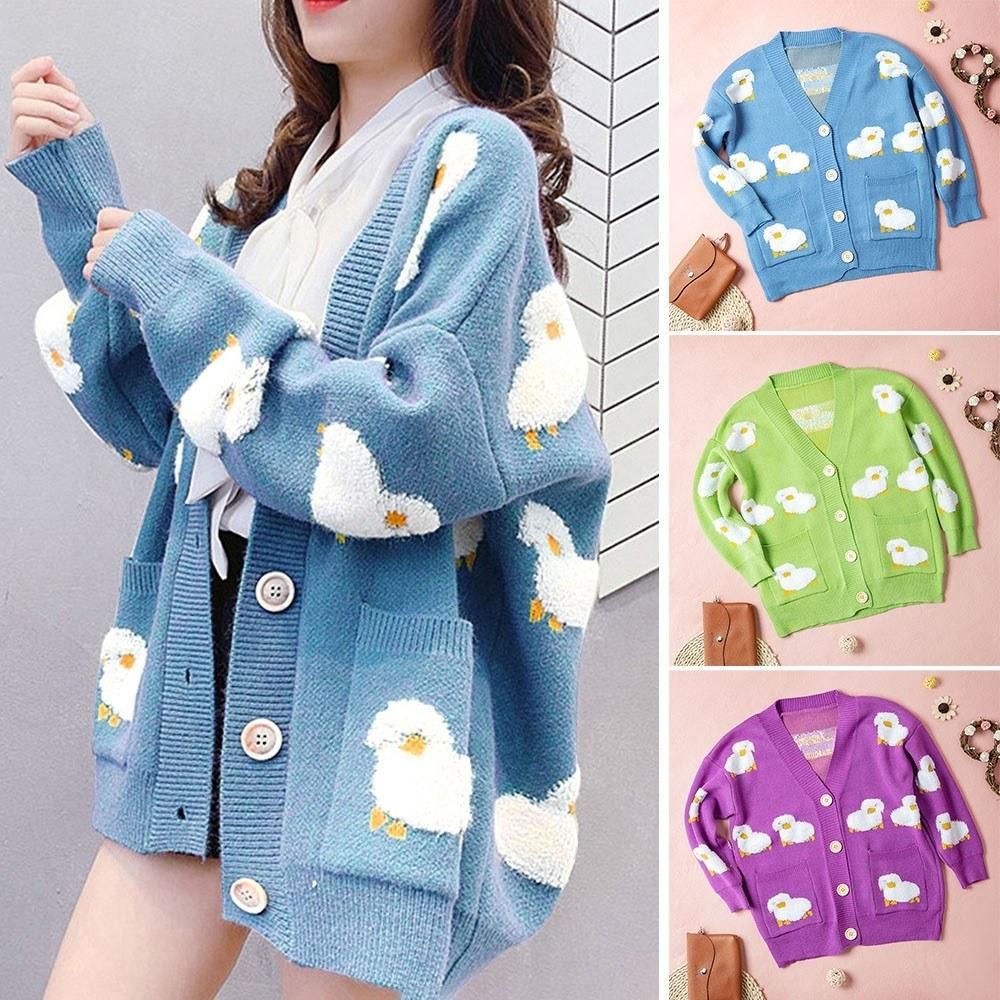 Buy Women Oversized Knitting Cardigan Coat Cute Sheep Buttons Front with Pocket Loose Sweater Casual Jackets in Nigeria