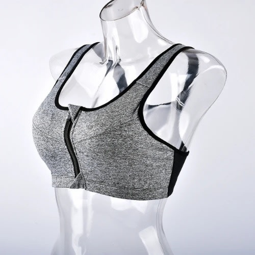 Women Padded Sport Vest With Adjustable Wide Strap And Zipper - Women Bra- Grey