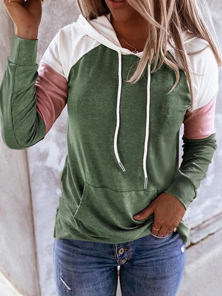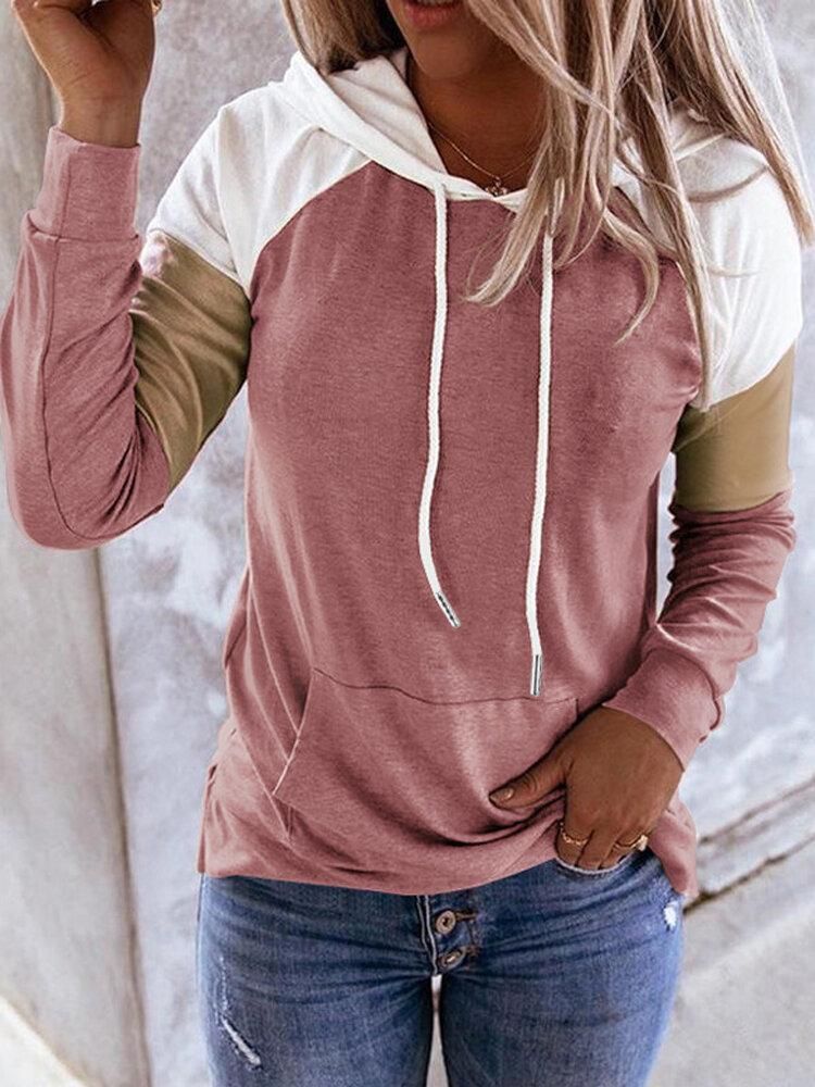 Buy Women Patchwork Raglan Sleeve Casual Kangaroo Pocket Drawstring Hoodies in Nigeria