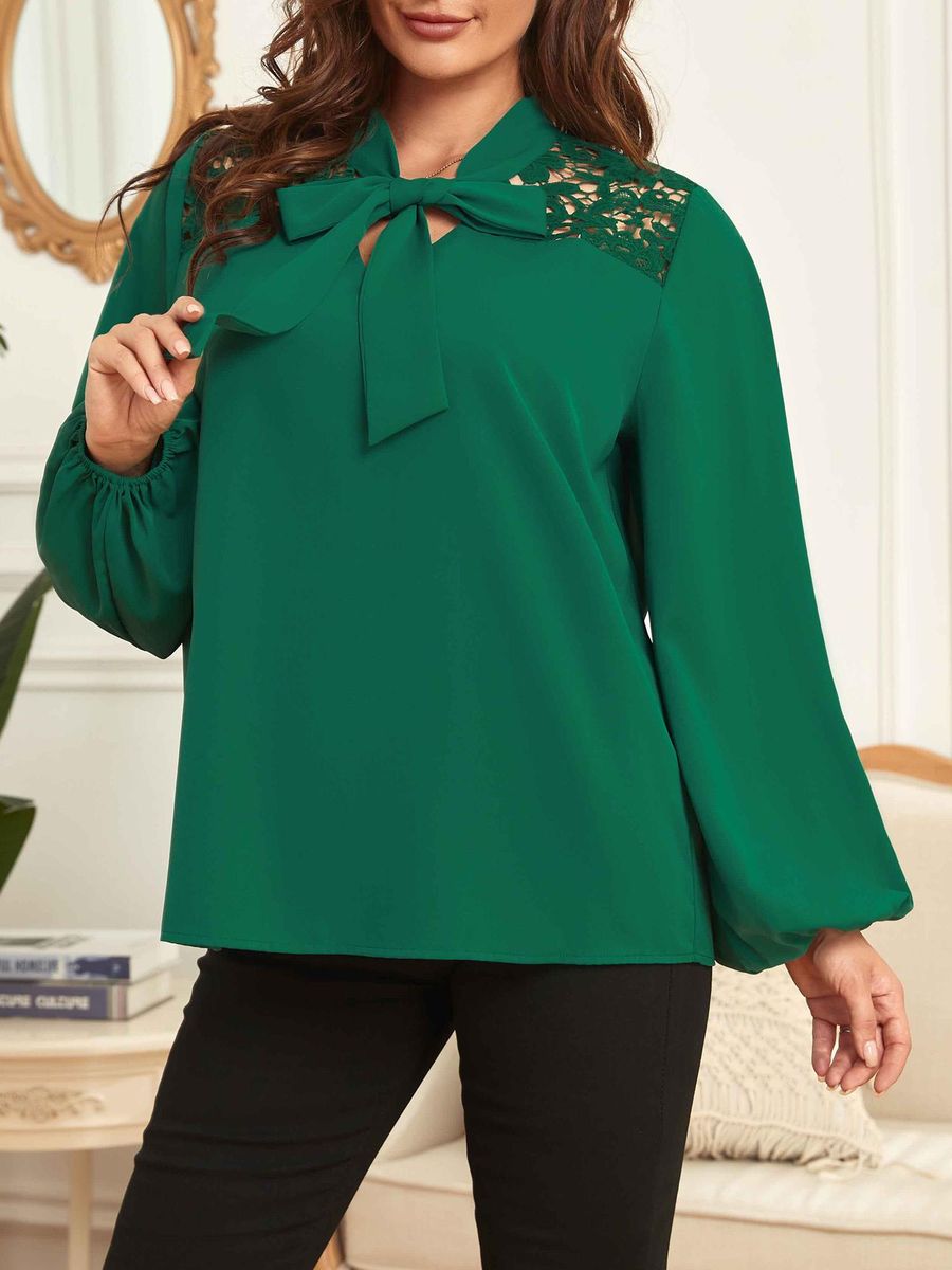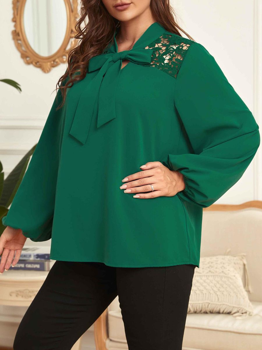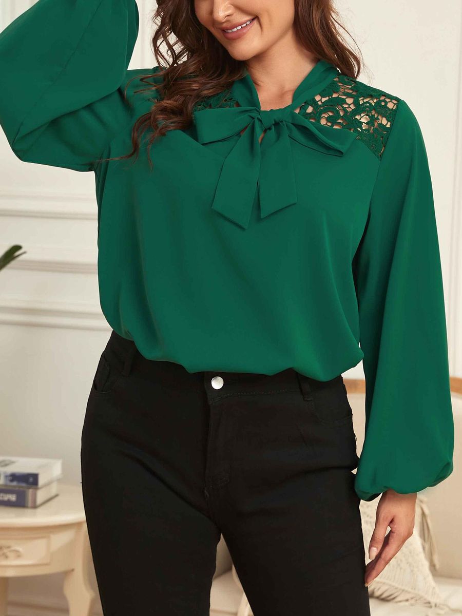 Buy Women Plus Size Blouse Neck Tie Long Sleeve Lace Casual Shirts in Nigeria